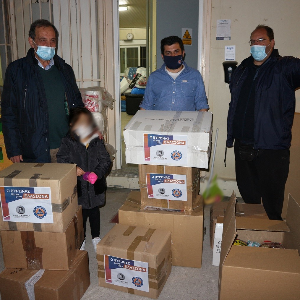 Αφού ολοκληρώθηκε η ενημέρωση και εκφράστηκε η συμπαράσταση της κοινωνίας και του δημάρχου Βύρωνα στους δοκιμαζόμενους κατοίκους του Τυρνάβου, παραδοθήκαν τα τρόφιμα και τα είδη πρώτης ανάγκης (χαρτικά – είδη προσωπικής υγιεινής και ρουχισμού). Στην συνέχεια η αποστολή μετέβη στο χωριό Δαμάσι που είναι από τα χωριά που επλήγησαν περισσότερο για να εκφράσει την συμπαράσταση της στους δοκιμαζόμενους κάτοικους και εν συνεχεία επέστρεψε στο Βύρωνα.