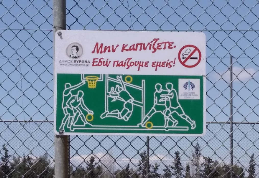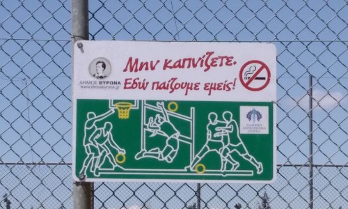 Αντικαπνιστικές πινακίδες στους χώρους άθλησης του Δήμου Βύρωνα