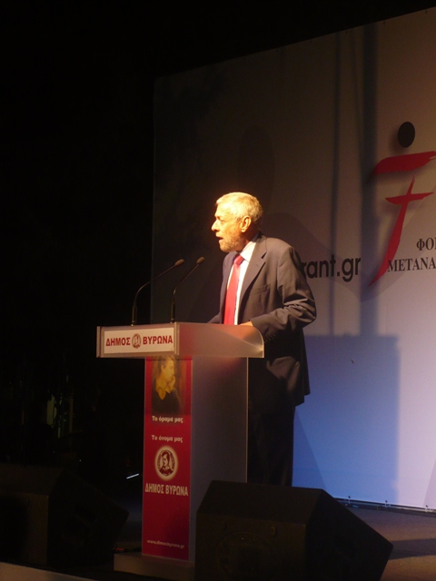O Αντινομάρχης Αθηνών Ιάκωβος Προμπονάς, χαιρέτισε την εκδήλωση εκ μέρους του Νομάρχη Αθηνών, Γιάννη Σγουρού.