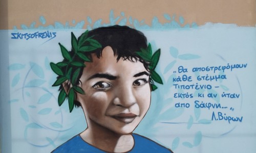 Ο αυτοδίδακτος εικαστικός καλλιτέχνης Skitsofrenis ενεργός στη street art από το 2008 με αμέτρητες μικρές και μεγάλες τοιχογραφίες στην Αθήνα αλλά και στην ιδιαίτερη πατρίδα του, την Μεσσηνιακή Μάνη.