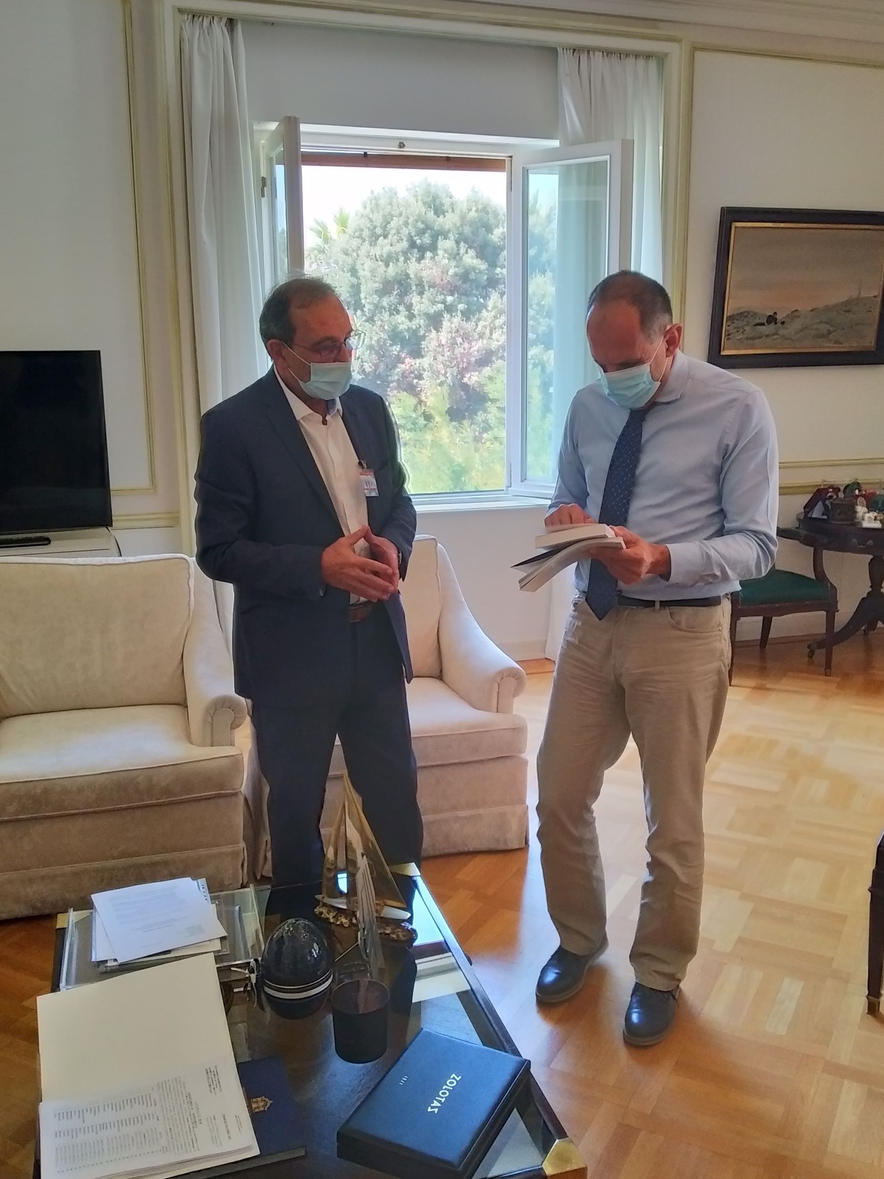 Στη συνάντηση, που έγινε σε πολύ καλό κλίμα ο Γρηγόρης Κατωπόδης, παρέδωσε στους υπουργούς, το ψήφισμα του Δημοτικού Συμβουλίου Βύρωνα για την προάσπιση του δημόσιου, κοινωφελούς και δασικού χαρακτήρα του Λόφου Κοπανά, καθώς και το πρόγραμμα του φετινού Φεστιβάλ στη «Σκιά των Βράχων».