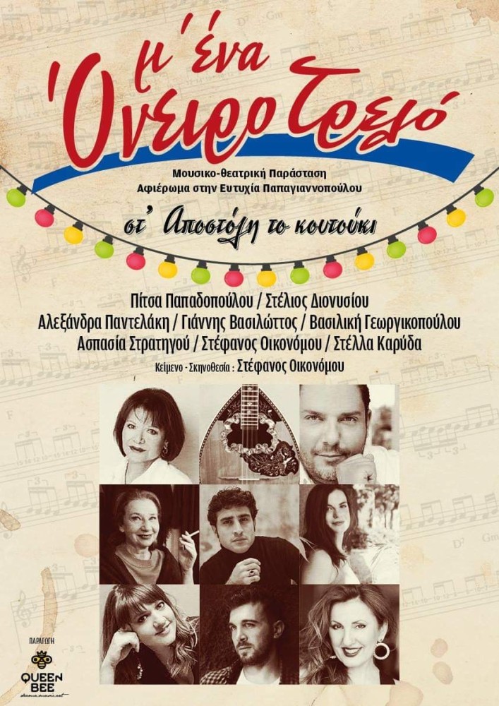 Ένα μουσικοθεατρικό αφιέρωμα στη ζωή και το έργο της εμβληματικής στιχουργού, της Ευτυχίας Παπαγιαννοπούλου. Γεννήθηκε στο Αϊδίνι της Μικράς Ασίας, αναγκάστηκε όμως να καταφύγει στην Ελλάδα μετά τη Μικρασιατική Καταστροφή. Έχασε σε μικρή ηλικία τον πατέρα της. Το 1911 παντρεύτηκε με προξενιό και απέκτησε δύο παιδιά την Καίτη και την Μαίρη.