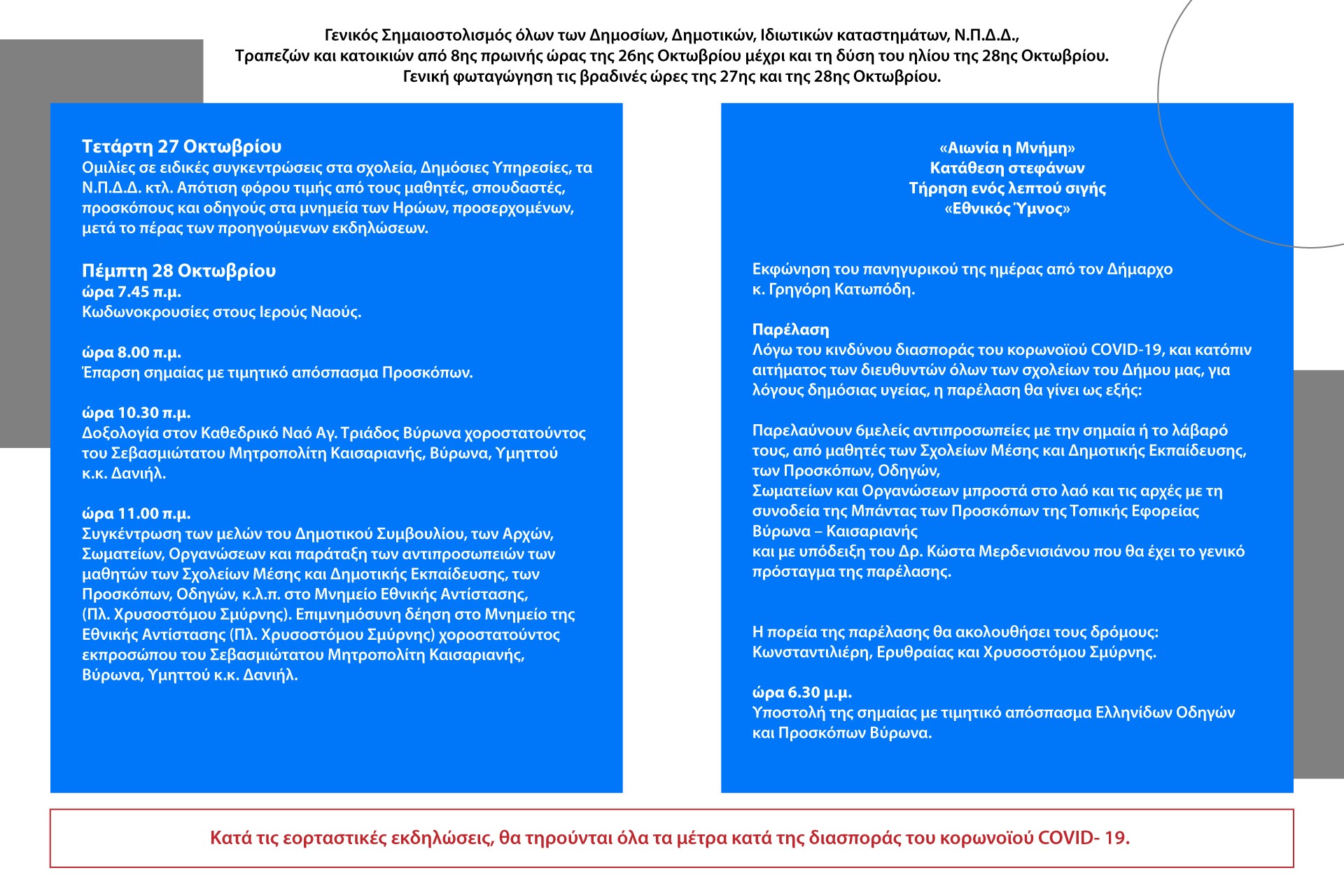 Πώς θα εορταστεί η 28η Οκτωβρίου στον Βύρωνα, λόγω της πανδημίας
