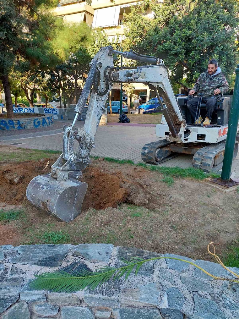 Κάποιοι θάμνοι που χρειάζεται να απομακρυνθούν για να προχωρήσουν οι εργασίες ανακατασκευής, μεταφέρθηκαν σήμερα από την Υπηρεσία Πράσινου του Δήμου Βύρωνα και φυτεύτηκαν στο πάρκο της Καραολή και Δημητρίου.