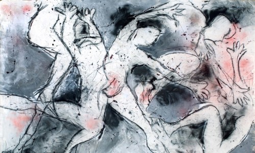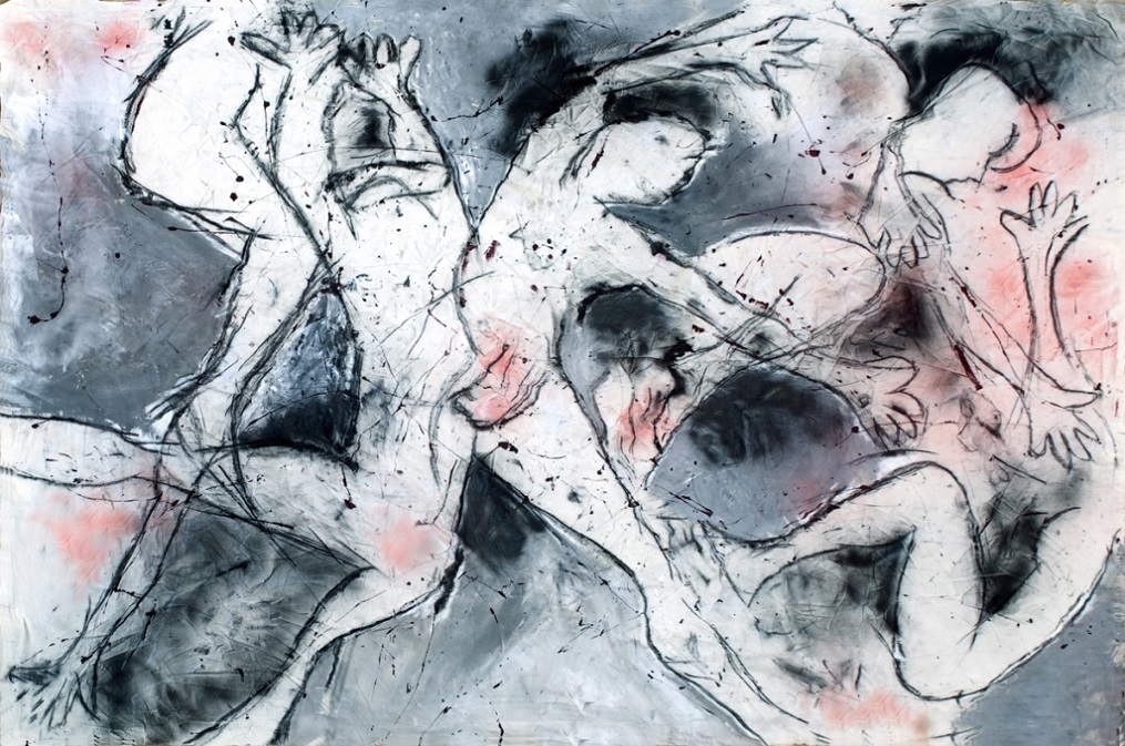 κεντρική εικόνα: Χριστίνα Φοίτου, Human wrongs, 2013, κάρβουνο, ακρυλικά και σπρέι σε ύφασμα, 168×244 εκ.