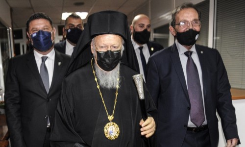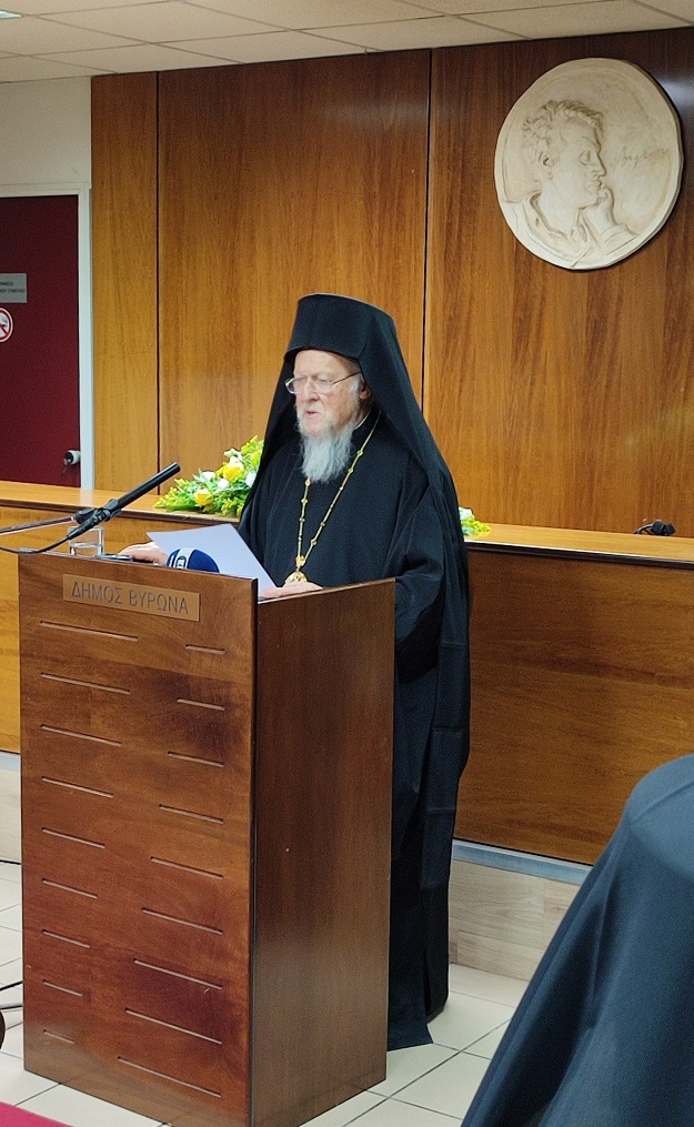 Ο Οικουμενικός Πατριάρχης έφτασε στο Δημαρχείο Βύρωνα στις 19:30, αφού προηγουμένως είχε επισκεφθεί το Ιερό Μετόχι της Ανάληψης, της Ιεράς Μονής Σίμωνος Πέτρας του Αγίου Όρους, για τα αποκαλυπτήρια οδοδείκτη, για την μετονομασία παρακείμενου δρόμου σε οδό «Αγίου Ιερώνυμου Σιμωνοπετρίτου» ενώ στη συνέχεια ακολούθησε Εσπερινός.