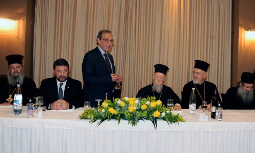 Την τελετή τίμησαν με την παρουσία τους οι Σεβασμιώτατοι Μητροπολίτες κ.κ.: Χαλκηδόνος Εμμανουήλ, Γερμανίας Αυγουστίνος, Σμύρνης Βαρθολομαίος, ο Πανιερώτατος Μητροπολίτης Φιλομηλίου Ηλίας, ο Πανοσιολογιότατος Δευτερεύων Αλέξανδρος, οι Αξιότιμοι κύριοι Νικόλαος Παπαχρήστου, Διευθυντής του Γραφείου Τύπου & Επικοινωνίας του Οικουμενικού Πατριαρχείου και ο Παναγιώτης Γραφιαδέλλης, κλητήρ του Οικουμενικού Πατριαρχείου, ο Θεοφιλέστατος Επίσκοπος Ευρίπου κ.κ. Χρυσόστομος εκ μέρους της Εκκλησίας της Ελλάδος, ο Σεβασμιότατος Μεσογαίας και Λαυρεωτικής κ. Νικόλαος, ο Καθηγούμενος Ι.Μ. Σίμωνος Πέτρας Αρχιμανδρίτης Ελισαίος, ο Πρωτοσύγκελος Ι.Μ. Καισαριανής πατήρ Αναστάσιος Τασσόπουλος εκπρόσωπος του Σεβασμιωτάτου Μητροπολίτη Καισαριανής – Βύρωνος & Υμηττού κ.κ. Δανιήλ.