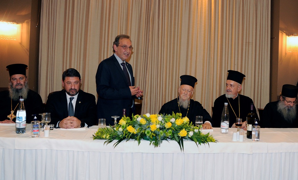 Στη συνέχεια ο Δήμος Βύρωνα παρέθεσε δείπνο, προς τιμή του Οικουμενικού Πατριάρχη, σε γνωστό εστιατόριο στον Καρέα.