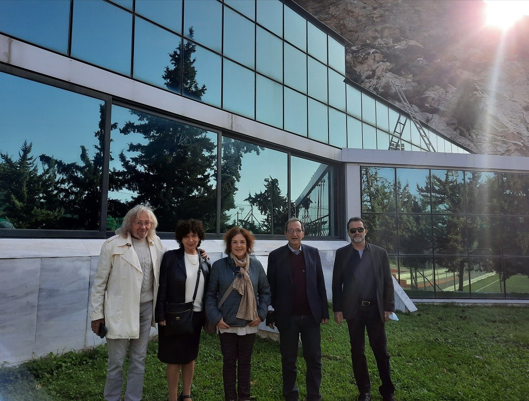 Στη φωτογραφία από αριστερά ο Δημήτρης Παπαγιάννης, η Αντιδήμαρχος Πολιτισμού, Παιδείας και Νέας Γενιάς Λεμονιά Κλωνάρη, η Κατερίνα Καμπανέλλη, ο Δήμαρχος Βύρωνα Γρηγόρης Κατωπόδης και ο Πρόεδρος του Δημοτικού Συμβουλίου Βύρωνα Γιώργος Πλακίδας, μπροστά στο χώρο που θα φιλοξενήσει τις δραστηριότητες του Καλλιτεχνικού - Εκπαιδευτικού Οργανισμού "Ιάκωβος Καμπανέλλης", που είναι παρακείμενος στα Θέατρα Βράχων του Βύρωνα "Μελίνα Μερκούρη" και "Άννα Συνοδινού".