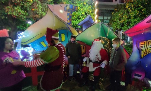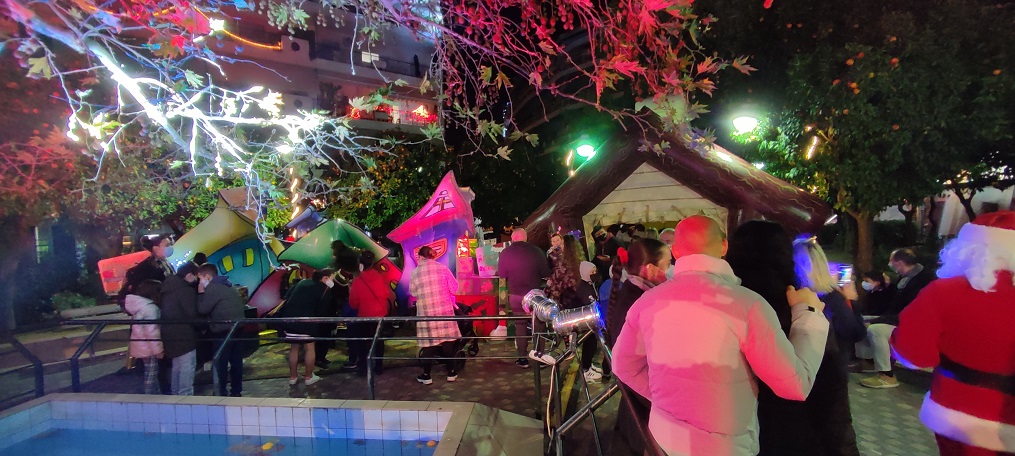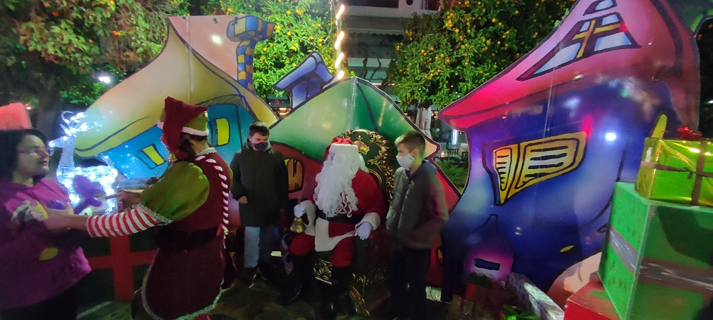 Πλήθος κόσμου -στην πλειονότητα τους μικρά παιδιά- γέμισε την πλατεία όπου περίμεναν για παιχνίδι, ένας αστείος Τάρανδος, ένας καλόκαρδος Χιονάνθρωπος, ένα ζωντανό Χριστουγεννιάτικο δέντρο και μία πολική Αρκουδίτσα δίνοντας τους τη δυνατότητα να φωτογραφηθούν μαζί τους και δημιουργώντας έτσι μια ζεστή Χριστουγεννιάτικη ατμόσφαιρα. Μια ζεστή γωνιά δημιουργήθηκε ειδικά για να υποδέχεται ο Άγιος Βασίλης τα παιδιά, μαζί με το ξωτικό του. Μικροί και μεγάλοι απόλαυσαν επίσης μια όμορφη συναυλία με μουσικές και τραγούδια απ΄ όλο τον κόσμο, με άρωμα Χριστουγέννων.