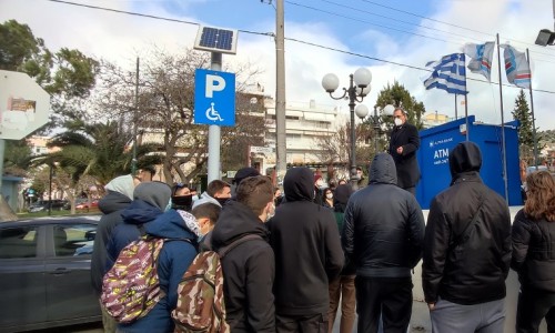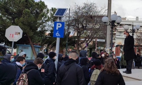 Στη συνέχεα ο Γρηγόρης Κατωπόδης μετέβη στην είσοδο του Δημαρχείου, όπου και μίλησε με τους μαθητές που είχαν συγκεντρωθεί εκεί.