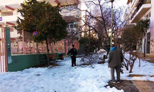 Aποχιονισμοί και κοπές σπασμένων κλαδιών και την Παρασκευή στους δρόμους του Βύρωνα!