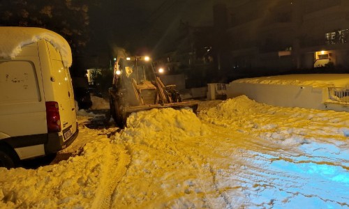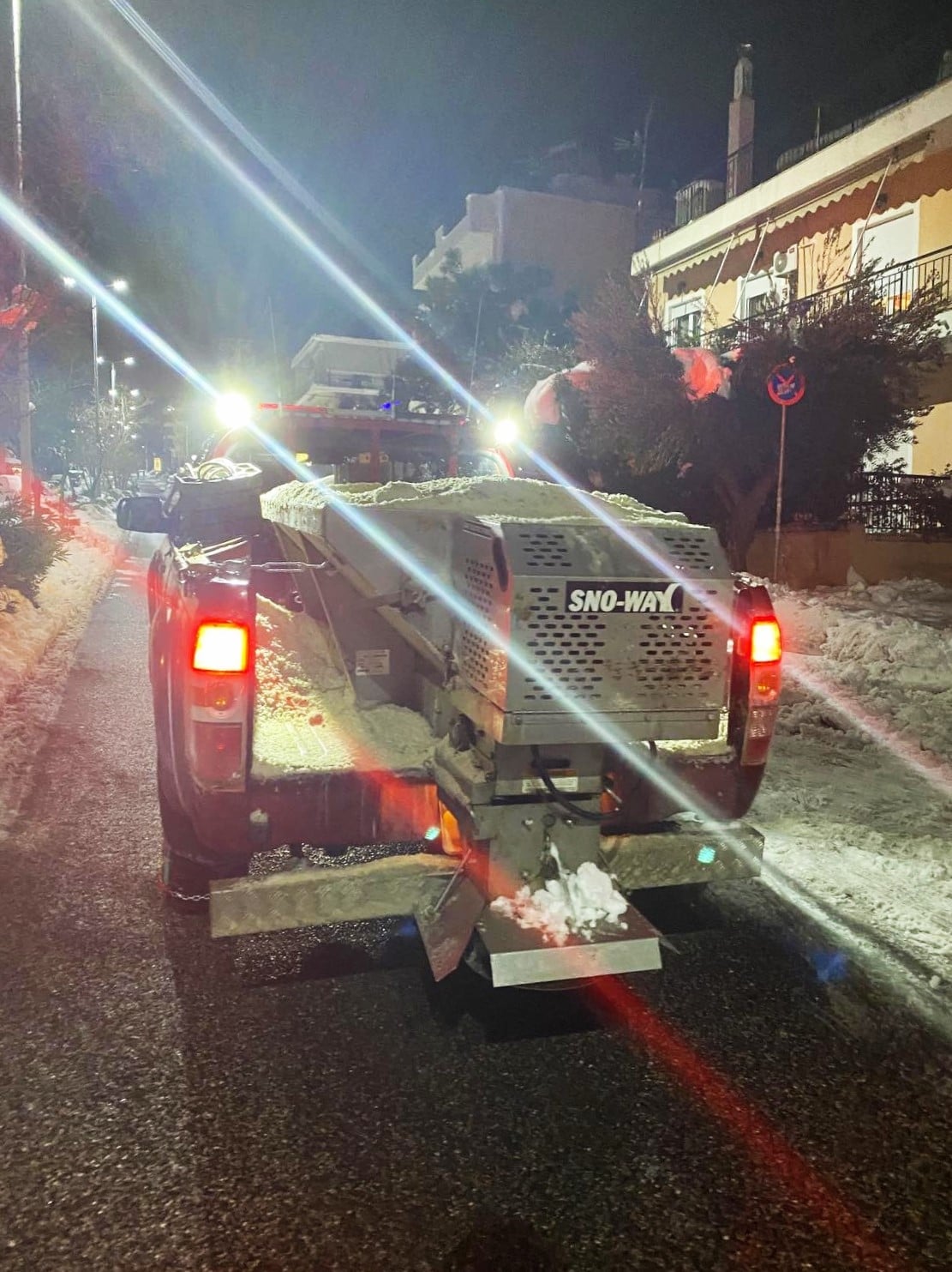 Σήμερα από το πρωί επιχειρούν συνολικά 6 εκχιονιστικά μηχανήματα με 3 αλατιέρες. Μετά το μεσημέρι θα ξεκινήσει εκχιονισμούς ένα ακόμα δημοτικό όχημα. Σύμφωνα με το σχεδιασμό τα οχήματα αυτά κινούνται σε: Καρέα, Ζωοδόχο Πηγή, Φρυγία, Νεράιδα και στο Κέντρο της πόλης. Παράλληλα, 2 συνεργεία της καθαριότητας συνεχίζουν τους αποχιονισμούς σε σημεία που δεν είναι δυνατή η διέλευση εκχιονιστικών οχημάτων.