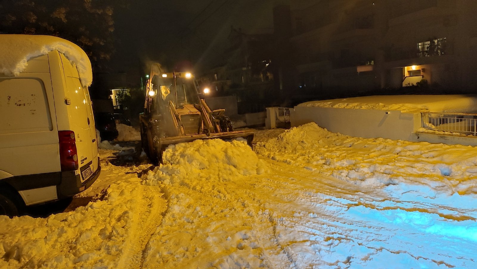 Συνεχίζονται και την Παρασκευή -με ακόμα πιο εντατικούς ρυθμούς- οι αποχιονισμοί στους δρόμους του Βύρωνα!