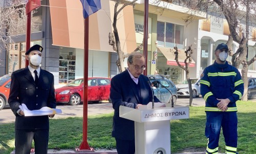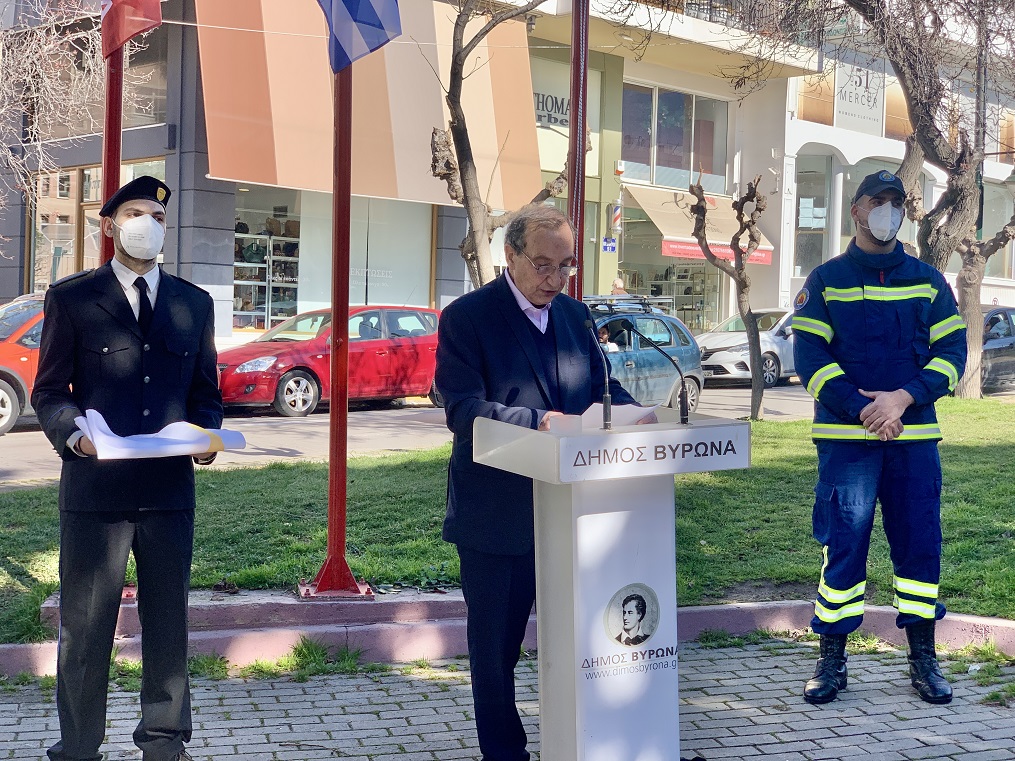 Στην τελετή που πραγματοποιήθηκε, ο Δήμαρχος Βύρωνα, Γρηγόρης Κατωπόδης, απηύθυνε σύντομο χαιρετισμό, στον οποίον τόνισε: «Ο Δήμος του Βύρωνα, με τη συμβολική αυτή εκδήλωση, τιμά και κάνει την αρχή μιάς σειράς δράσεων και εκδηλώσεων αφιερωμένων στην φετινή επέτειο των 100 ετών. Ως δημοτική αρχή, θεωρούμε χρέος μας να κρατήσουμε τη μνήμη ζωντανή και αυτή είναι η κατεύθυνσή μας», όπως ανέφερε χαρακτηριστικά.