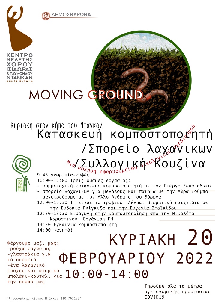 Στο πλαίσιο του προγράμματος Moving Ground θα κατασκευάσουμε μαζί στον κήπο του Κέντρου Μελέτης Χορού «Ντάνκαν», τον πρώτο κομποστοποιητή της γειτονιάς.