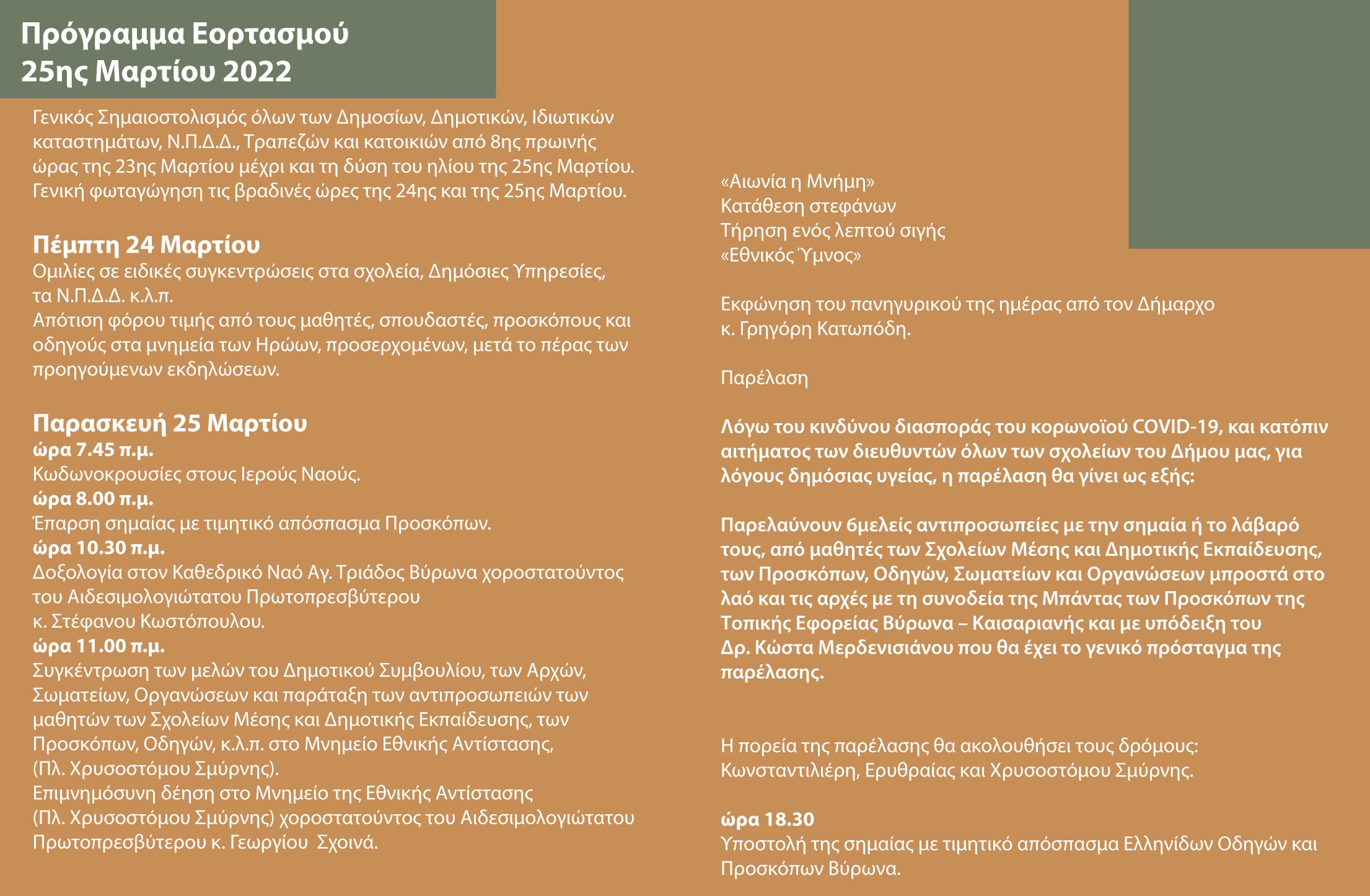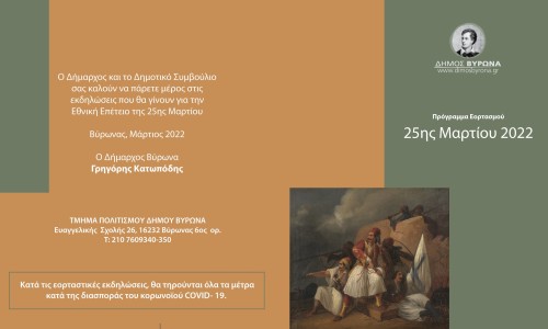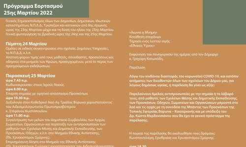 * Ο Δήμαρχος και το Δημοτικό Συμβούλιο σας καλούν να πάρετε μέρος στις εκδηλώσεις που θα γίνουν για την Εθνική Επέτειο της 25ης Μαρτίου.