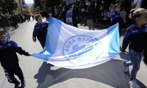 Στη συνέχεια, ακολούθησε η παρέλαση μαθητών, πολιτιστικών και αθλητικών συλλόγων της πόλης στην οδό Χρυσοστόμου Σμύρνης με τη συνοδεία της Μπάντας των Προσκόπων της Τοπικής Εφορείας Βύρωνα και με την καθοδήγηση του Δρ. Κώστα Μερδενισιάνου που είχε το γενικό πρόσταγμα των εκδηλώσεων.