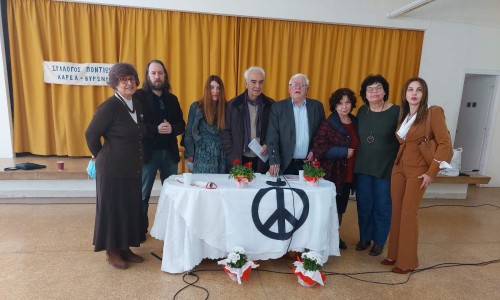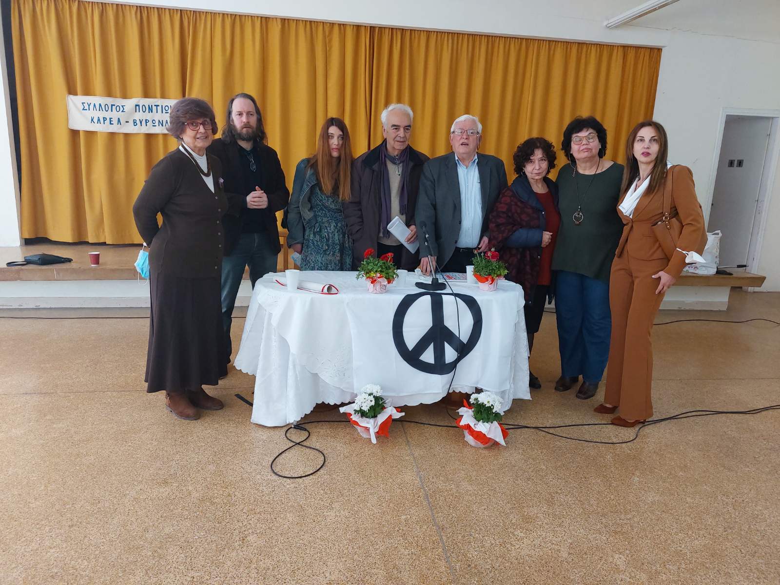 Την έναρξη της εκδήλωσης έκανε η πρόεδρος των Ποντίων Σιμέλα Αντωνιάδη και ακολούθησε ο Πάνος Τριγάζης, που τοποθέτησε στο τραπέζι της εκδήλωσης σημαία ειρήνης-μήνυμα προς την μαρτυρική Μαριούπολη, τελευταία μεγάλη ποντιακή εστία στη Ρωσία.