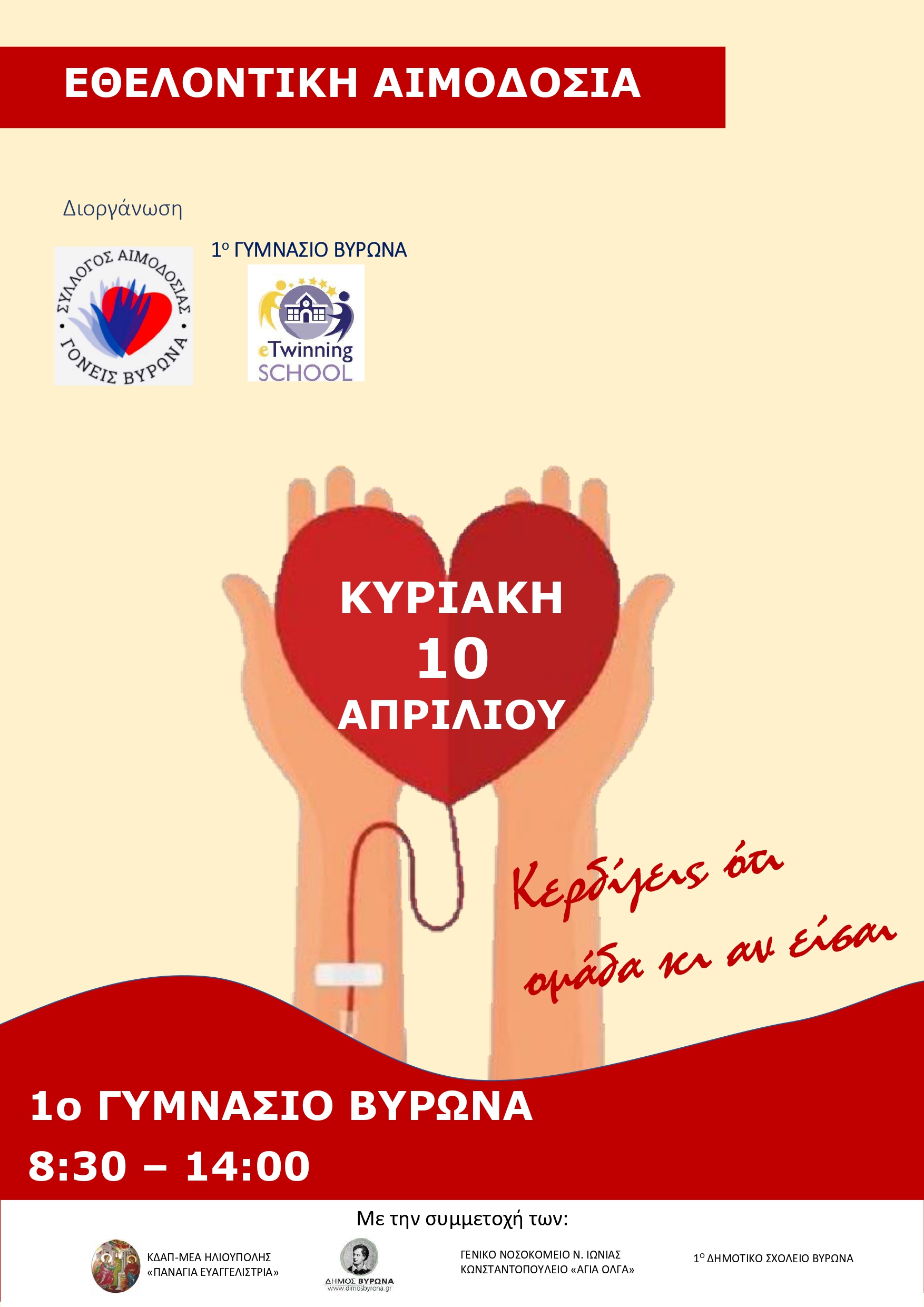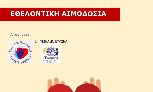 Εθελοντική Αιμοδοσία από το 1ο Γυμνάσιο Βύρωνα την Κυριακή 10 Απριλίου