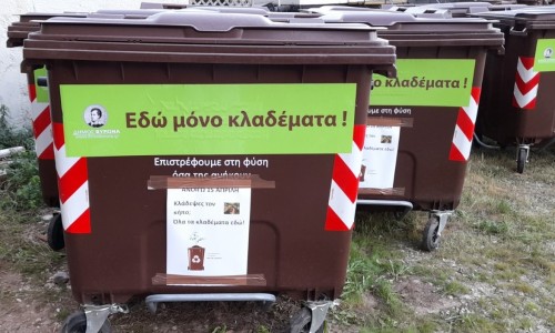 Τα σημεία στα οποία βρίσκονται οι ειδικοί καφέ κάδοι που φέρουν αυτοκόλλητο με την ένδειξη ΜΟΝΟ ΚΛΑΔΕΜΑΤΑ, έχουν τοποθετηθεί: