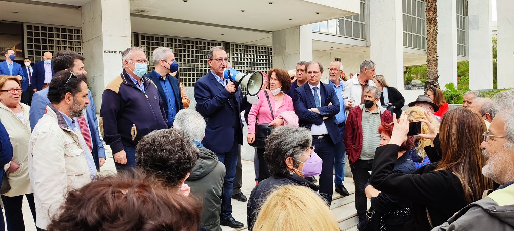 Από το πρωί μετέβησαν στον Άρειο Πάγο ο Δήμαρχος Βύρωνα Γρηγόρης Κατωπόδης, οι Αντιδήμαρχοι, οι επικεφαλής των δημοτικών παρατάξεων, δημοτικοί σύμβουλοι, οι βουλευτές Νότιου τομέα του ΣΥΡΙΖΑ, Γιάννης Μπαλάφας, Θεανώ Φωτίου, Νίκος Παπάς, Ραλλία Χρηστίδου και Γιάννης Μουζάλας. Παρούσες στην συγκέντρωση ήταν επίσης η Ελένη Βασιλοπούλου περιφερειακή σύμβουλος της "Δύναμης Ζωής" και πρόεδρος του Φεστιβάλ των Βράχων και η Μαριάννα Τσίχλη περιφερειακή σύμβουλος Αττικής και επικεφαλής του συνδυασμού "Ανυπότακτη Αττική".