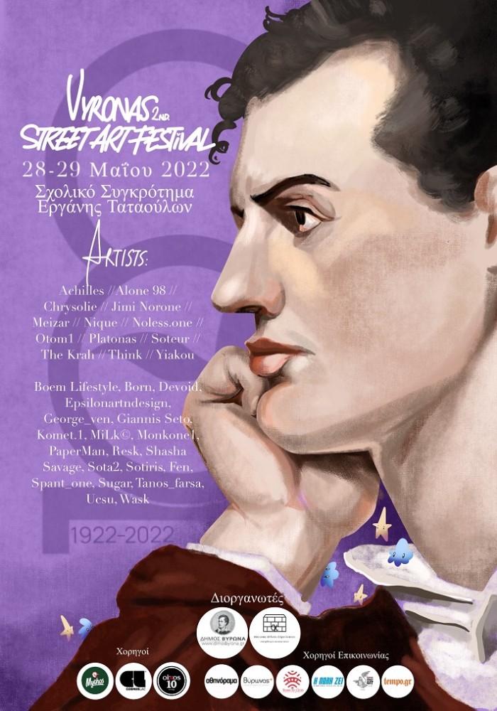 Έπειτα από τη μεγάλη αποδοχή και επιτυχία που γνώρισε πέρυσι η νέα αυτή καλλιτεχνική πρωτοβουλία του Δήμου Βύρωνα, το 2ο Vyronas Street Art Festival, έρχεται με… φόρα ακόμη πιο δυναμικό και πολύ μεγαλύτερο! Καλλιτέχνες της street art και του graffiti, θα δημιουργήσουν έργα εμπνευσμένα από τον σπουδαίο πολιτισμό των Μικρασιατών προσφύγων: τη μουσική, τη λογοτεχνία, το χορό και τα έθιμα τους. Με αυτή τη γιορτή ο Δήμος Βύρωνα, ως ο πρώτος αστικός προσφυγικός συνοικισμός της Ελλάδας, αποδίδει φόρο τιμής στον πολιτιστικό πλούτο των Ελλήνων της Μικρασίας, τιμώντας παράλληλα την επέτειο των 100 χρόνων από την Μικρασιατική Καταστροφή.