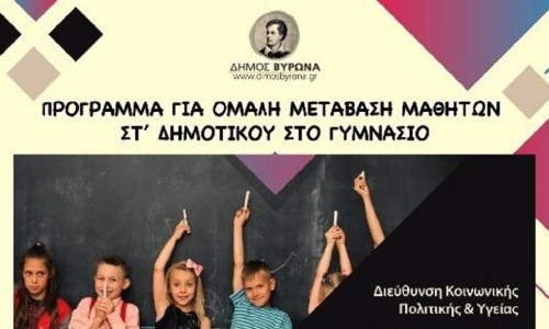 Στο πλαίσιο των δράσεων για την πρόληψη και την αγωγή υγείας σε παιδιά σχολικής ηλικίας, υλοποιήθηκε ξανά (μετά από διακοπή 2 ετών λόγω covid-19), το πρόγραμμα για την ομαλή μετάβαση των μαθητών/μαθητριών της ΣΤ΄ τάξης Δημοτικού στο Γυμνάσιο, υπό την αιγίδα της Διεύθυνσης Κοινωνικής Πολιτικής & Υγείας Δήμου Βύρωνα σε συνεργασία με το Τμήμα Παιδείας, Νέας Γενιάς & Δια βίου Μάθησης, καθώς και τους Διευθυντές/ντριες και το εκπαιδευτικό προσωπικό των σχολικών μονάδων.
