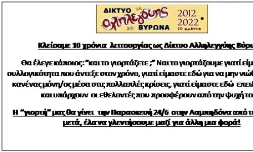 Κλείσαμε 10 χρόνια λειτουργίας ως Δίκτυο Αλληλεγγύης Βύρωνα