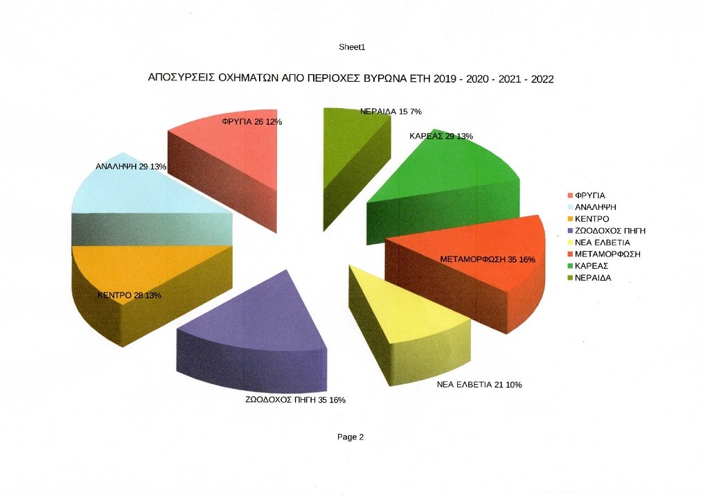 Συνολικά εντοπίστηκαν 711 οχήματα στα οποία επικολλήθηκε η ειδική σήμανση του εγκαταλελειμμένου οχήματος, όπως ορίζει ο νόμος.
