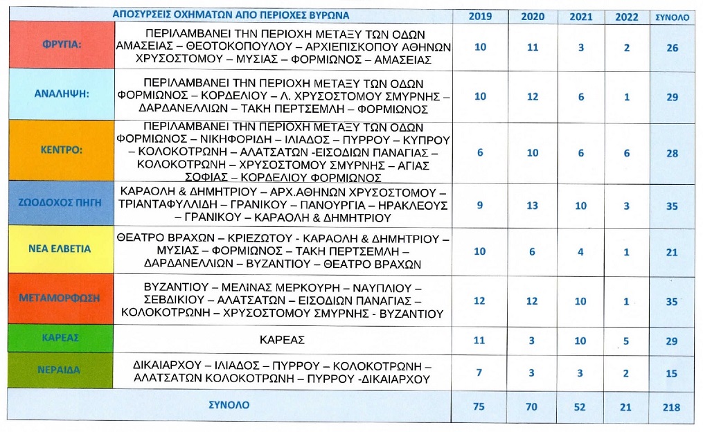 Πιο συγκεκριμένα, ανά έτος, αποσύρθηκαν από τους δρόμους της πόλης μας: