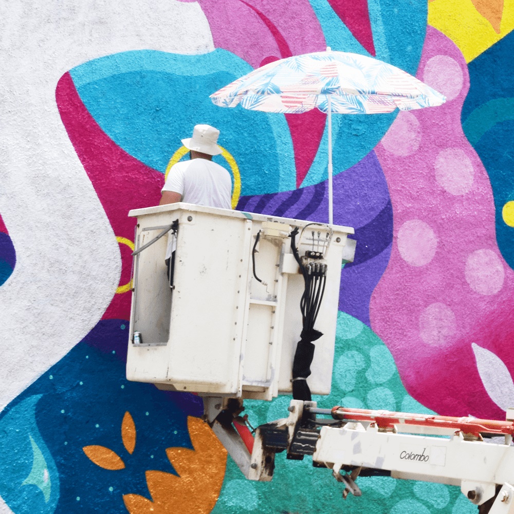 Το έργο ανήκει στην κατηγορία τοιχογραφιών που ονομάζονται Funky feathers, μέσω των οποίων αναδεικνύονται με έντονα χρώματα μορφές και σχήματα από τον κόσμο της εικονογράφησης. Σκοπός των έργων αυτών είναι να προσφέρουν ευχαρίστηση και καλοκαιρινή διάθεση στους θεατές τους μεταμορφώνοντας παράλληλα τους μουντούς τοίχους της πόλης.