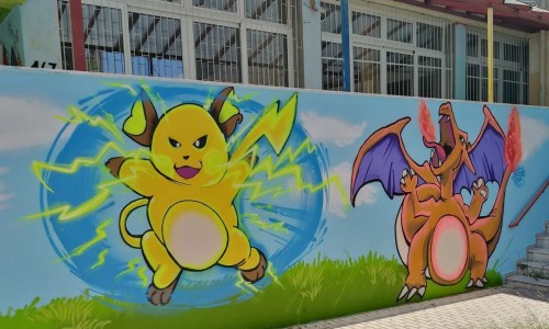 Αυτή τη φορά ήταν η σειρά του 6ου και 7ου Νηπιαγωγείου, όπου ο Resk, γνωστός μας από τις συμμετοχές του στα δύο Street Art Festival του Δήμου Βύρωνα, πήρε τα spray του και ζωντάνεψε με την εμπνευσμένη από τα καρτούν τέχνη του, τους εξωτερικούς τοίχους των σχολείων. Όμορφες χαρούμενες εικόνες με ζωντανά χρώματα, γεμάτες κέφι και ζωή περιμένουν τα παιδιά που σε λίγες ημέρες θα περάσουν την πόρτα του σχολείου και θα τα συντροφεύσουν τη νέα σχολική χρονική.