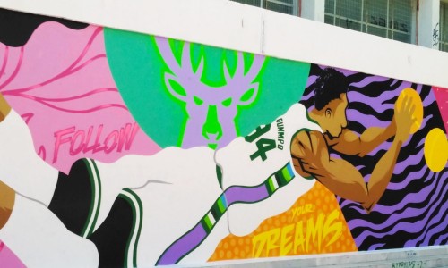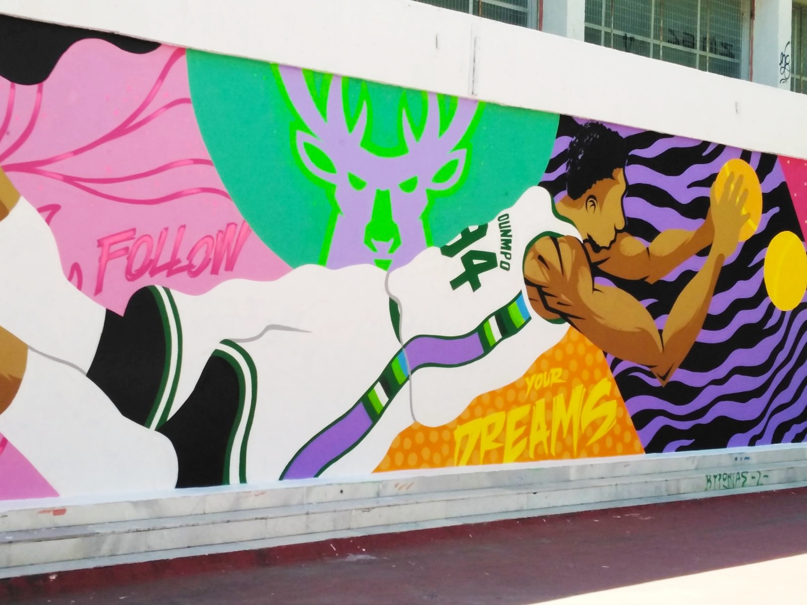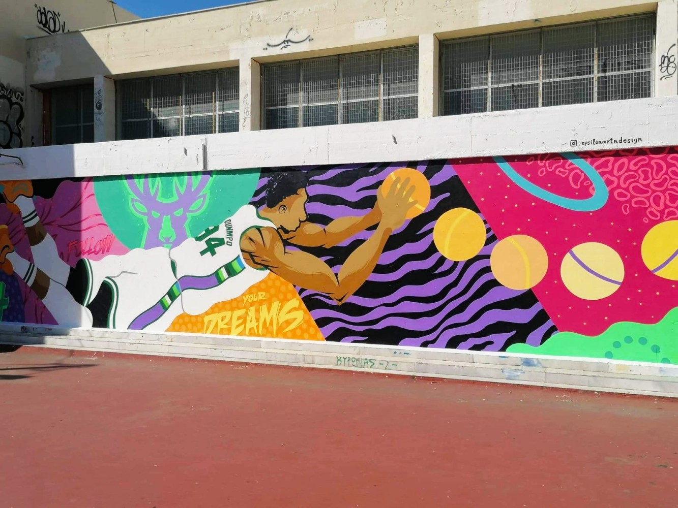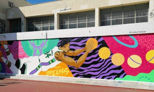 Το μεγάλο αστέρι της ομάδας, ο Γιάννης Αντετοκούνμπο, που αποτελεί πρότυπο αθλητή και πηγή έμπνευσης για εκατομμύρια παιδιά σε όλο τον πλανήτη, ενέπνευσε και το γνωστό μας street artist, Epsilon για να δημιουργήσει μια πανέμορφη τοιχογραφία, η οποία κοσμεί πλέον το 8ο Δημοτικό Σχολείο Βύρωνα! Τα παιδιά μας χρειάζονται θετικά πρότυπα και ο Γιάννης Αντετοκούνμπο είναι παράδειγμα προς μίμηση, τόσο ως καλαθοσφαιριστής, όσο και ως άνθρωπος!