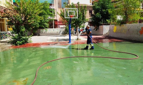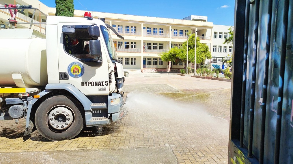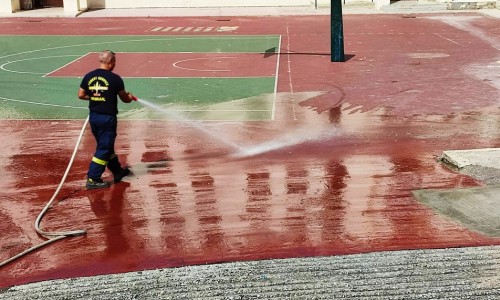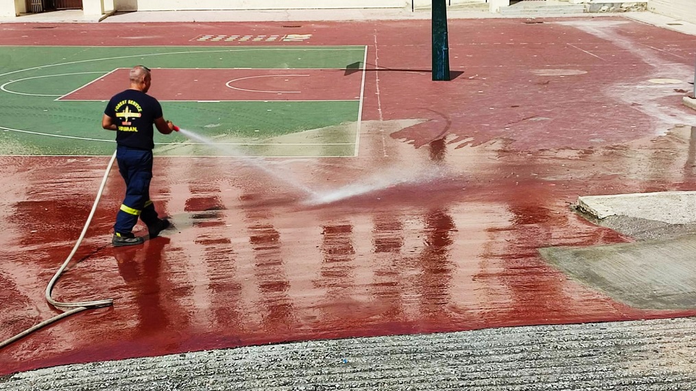· Πλύσιμο των προαυλίων των σχολείων πριν τη έλευση μαθητών και εκπαιδευτικών