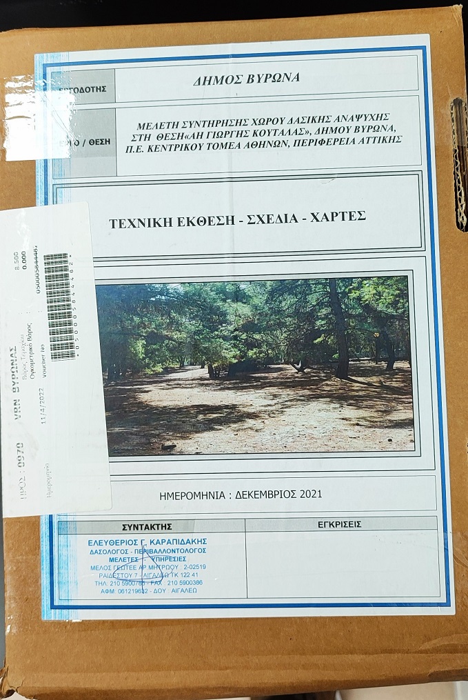 Δείτε παρακάτω το έγγραφο δωρεάς της μελέτης από το Δήμο Βύρωνα προς τη Φιλοδασική Ένωση Αθηνών.
