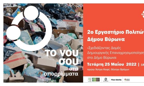 Τα δύο εργαστήρια (διαβουλεύσεις) πολιτών, πραγματοποιήθηκαν τον Μάιο του 2022 στον πολυχώρο Άστρα στο Θέατρο Βράχων σε δύο επιμέρους ενότητες. Η 1η διαβούλευση επικεντρώθηκε στα ζητήματα της καθαριότητας της πόλης και της αποκομιδής απορριμμάτων, ενώ στη 2η διαβούλευση οι συμμετέχοντες επικεντρώθηκαν στις νέες πολιτικές και δομές που χρειάζεται να αναπτύξει ο Δήμος για την επαναχρησιμοποίηση υλικών και, εν γένει, την ενίσχυση της κυκλικής οικονομίας μέσω της αλλαγής του μοντέλου διαχείρισης των απορριμμάτων.