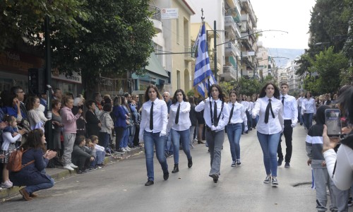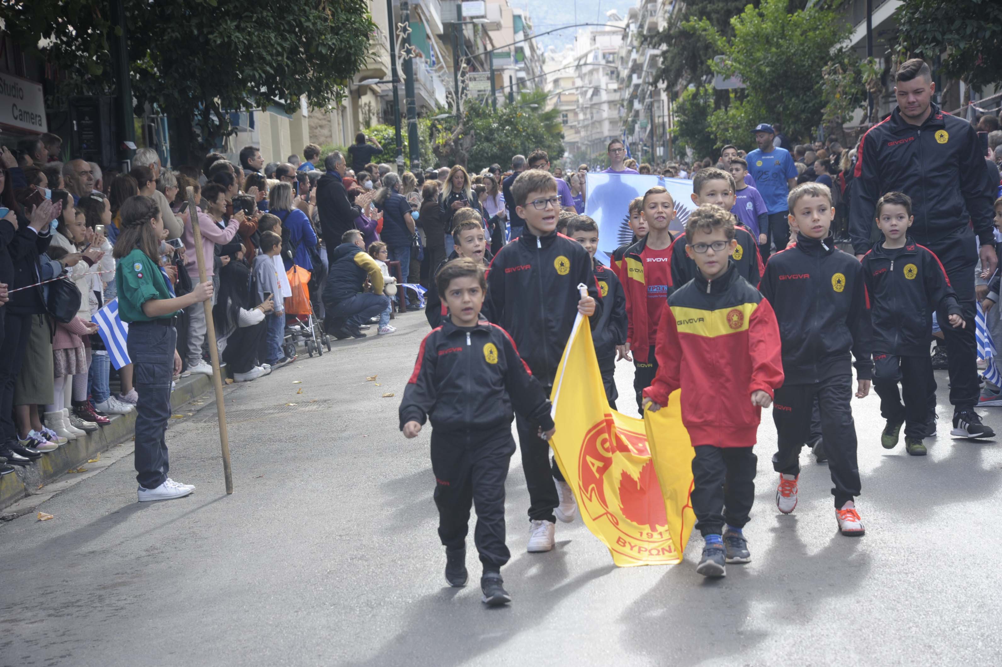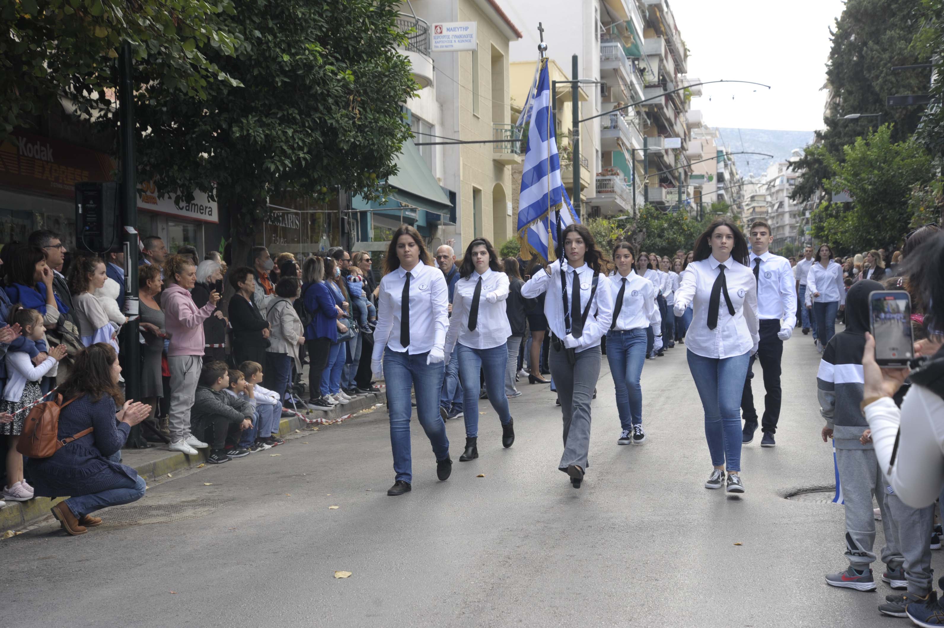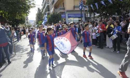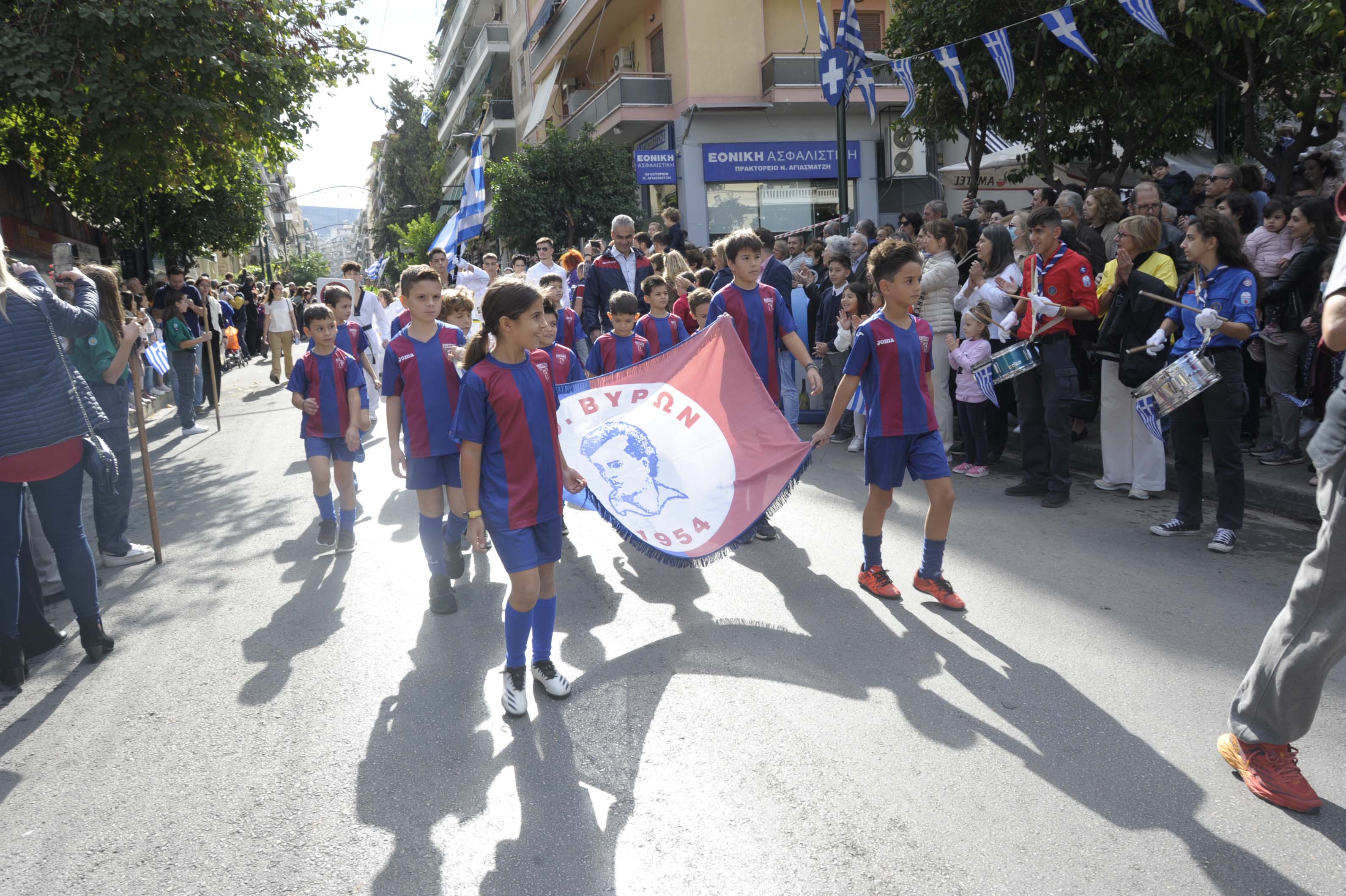 Στη συνέχεια, ακολούθησε η παρέλαση μαθητών, πολιτιστικών και αθλητικών συλλόγων της πόλης στην οδό Χρυσοστόμου Σμύρνης με τη συνοδεία της Μπάντας των Προσκόπων της Τοπικής Εφορείας Βύρωνα, με την καθοδήγηση του Δρ. Κώστα Μερδενισιάνου που είχε το γενικό πρόσταγμα των εκδηλώσεων.