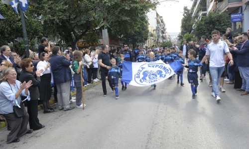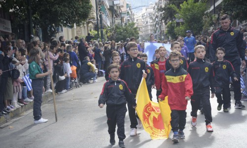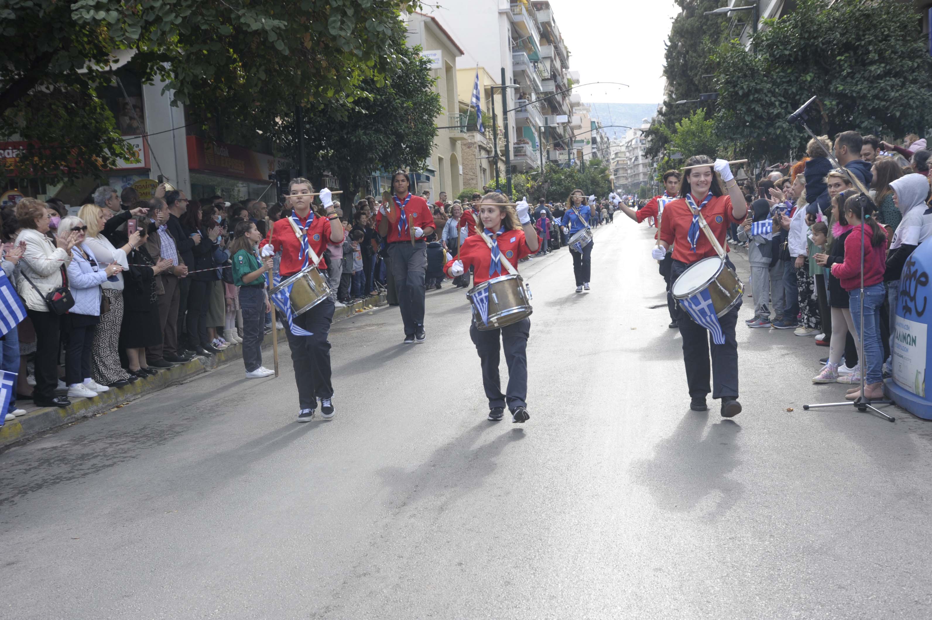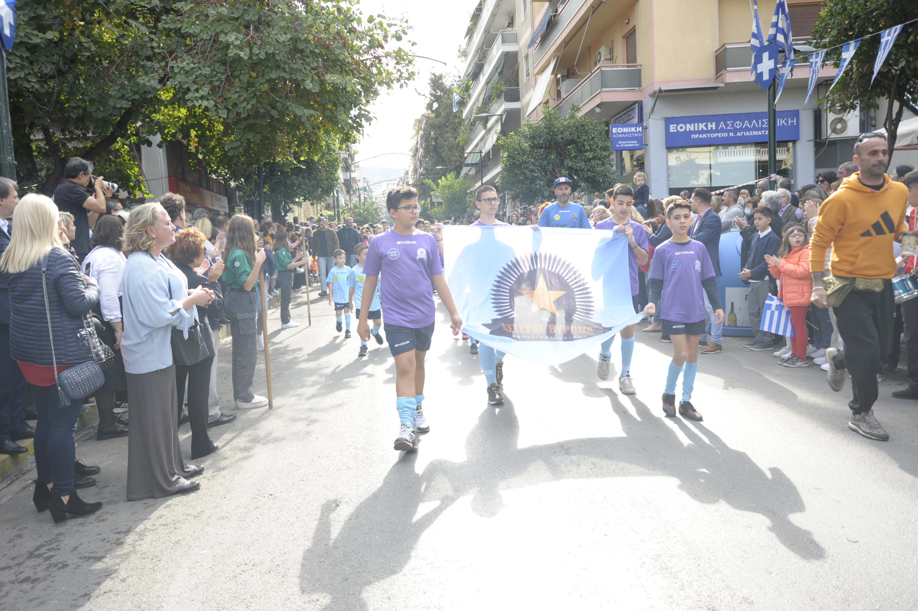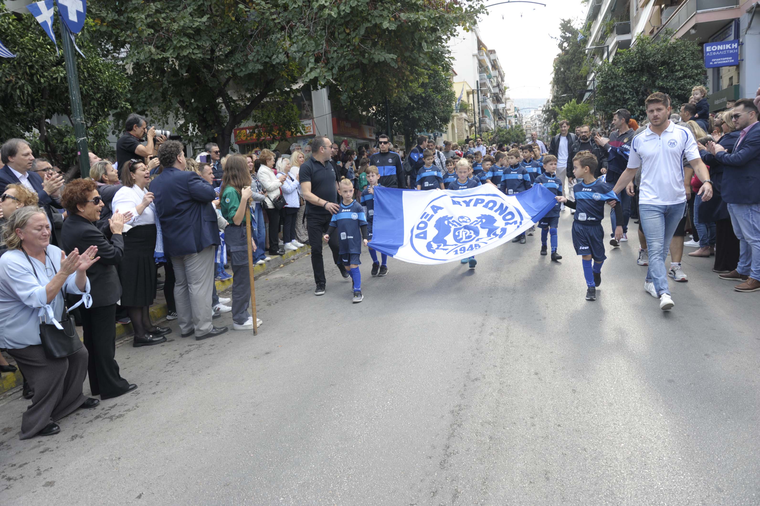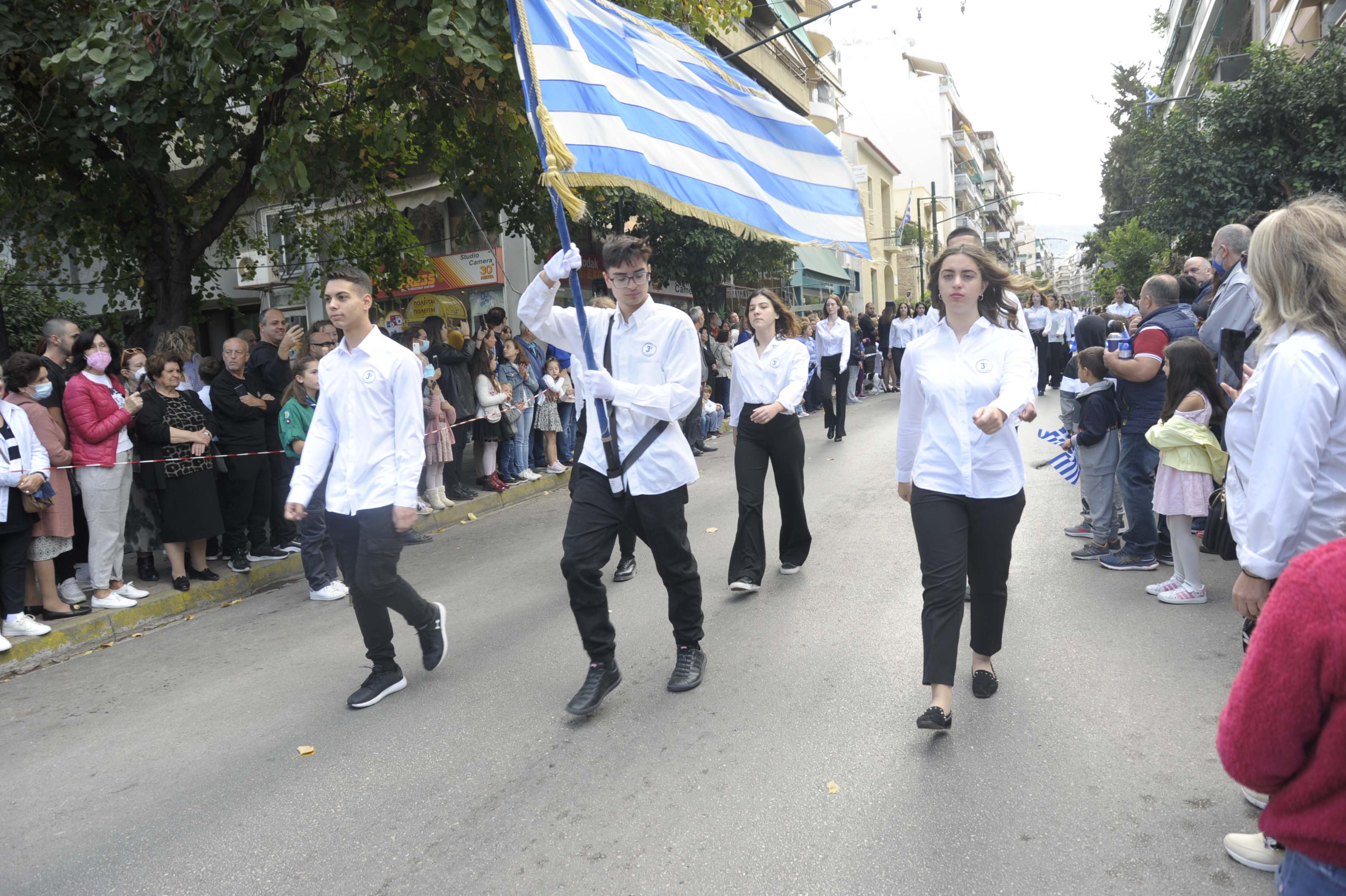 Στη συνέχεια, ακολούθησε η παρέλαση μαθητών, πολιτιστικών και αθλητικών συλλόγων της πόλης στην οδό Χρυσοστόμου Σμύρνης με τη συνοδεία της Μπάντας των Προσκόπων της Τοπικής Εφορείας Βύρωνα, με την καθοδήγηση του Δρ. Κώστα Μερδενισιάνου που είχε το γενικό πρόσταγμα των εκδηλώσεων.