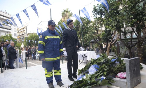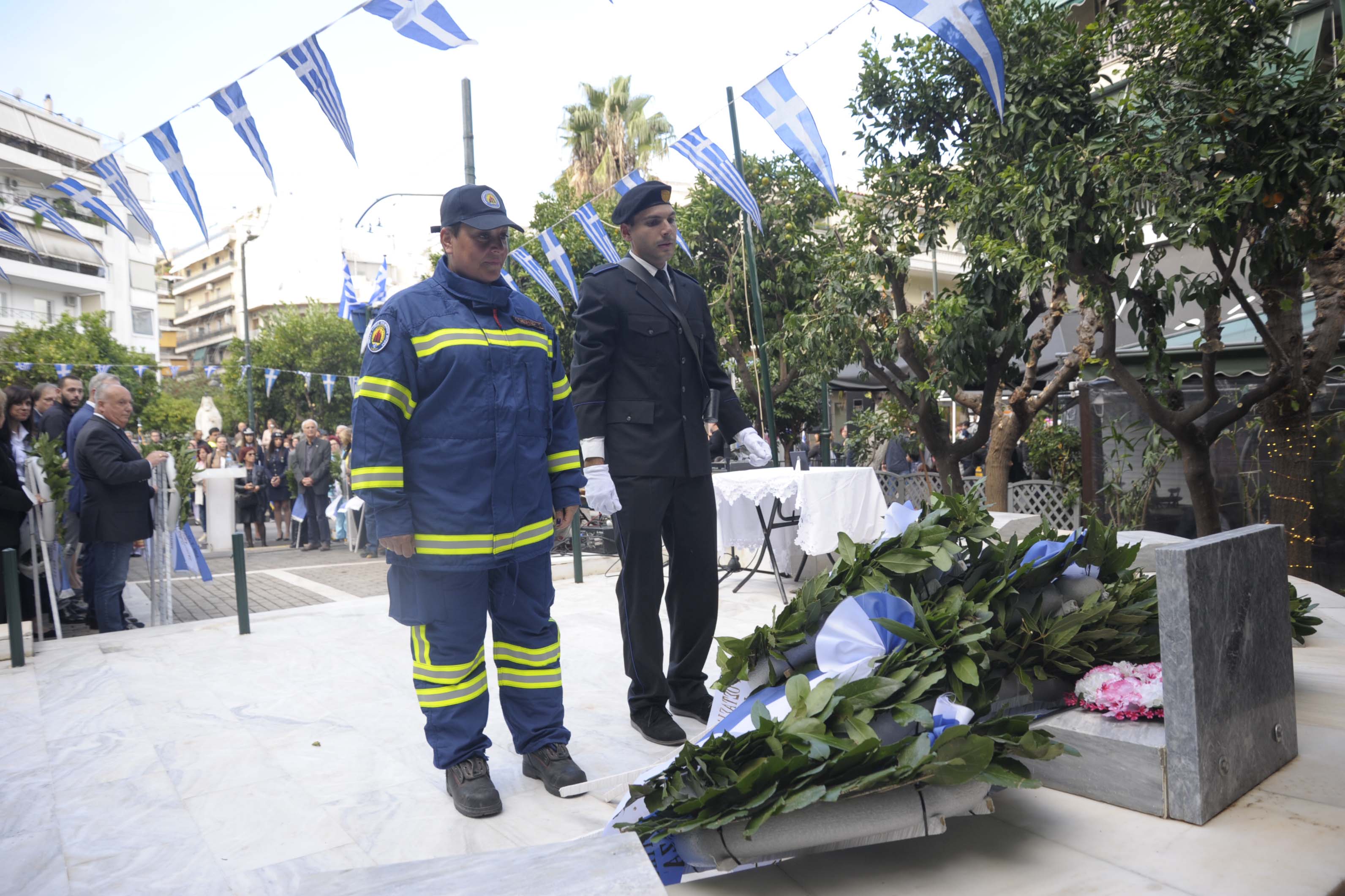 Στεφάνια κατέθεσαν το Σώμα Ελληνικού Οδηγισμού Τοπικό Τμήμα Καρέα και οι Εθελοντές του Κέντρου Προστασίας Δασών και Φυσικού Περιβάλλοντος Βύρωνα.