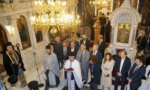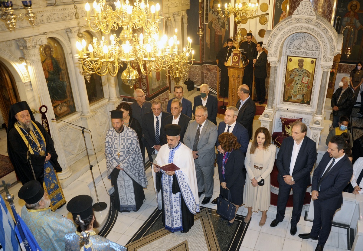 Ακολούθησε στις 10.30 η δοξολογία στον Καθεδρικό Ναό Αγίας Τριάδας, Βύρωνα χοροστατούντος του Πανοσιολογιώτατου Αρχιμανδρίτη κου Χριστόδουλου Κοτσίφη, και την παρουσία του Δημάρχου και των Αντιδημάρχων Βύρωνα, των επικεφαλής των Δημοτικών Παρατάξεων, Δημοτικών Συμβούλων και επίσημων θεσμικών εκπροσώπων.