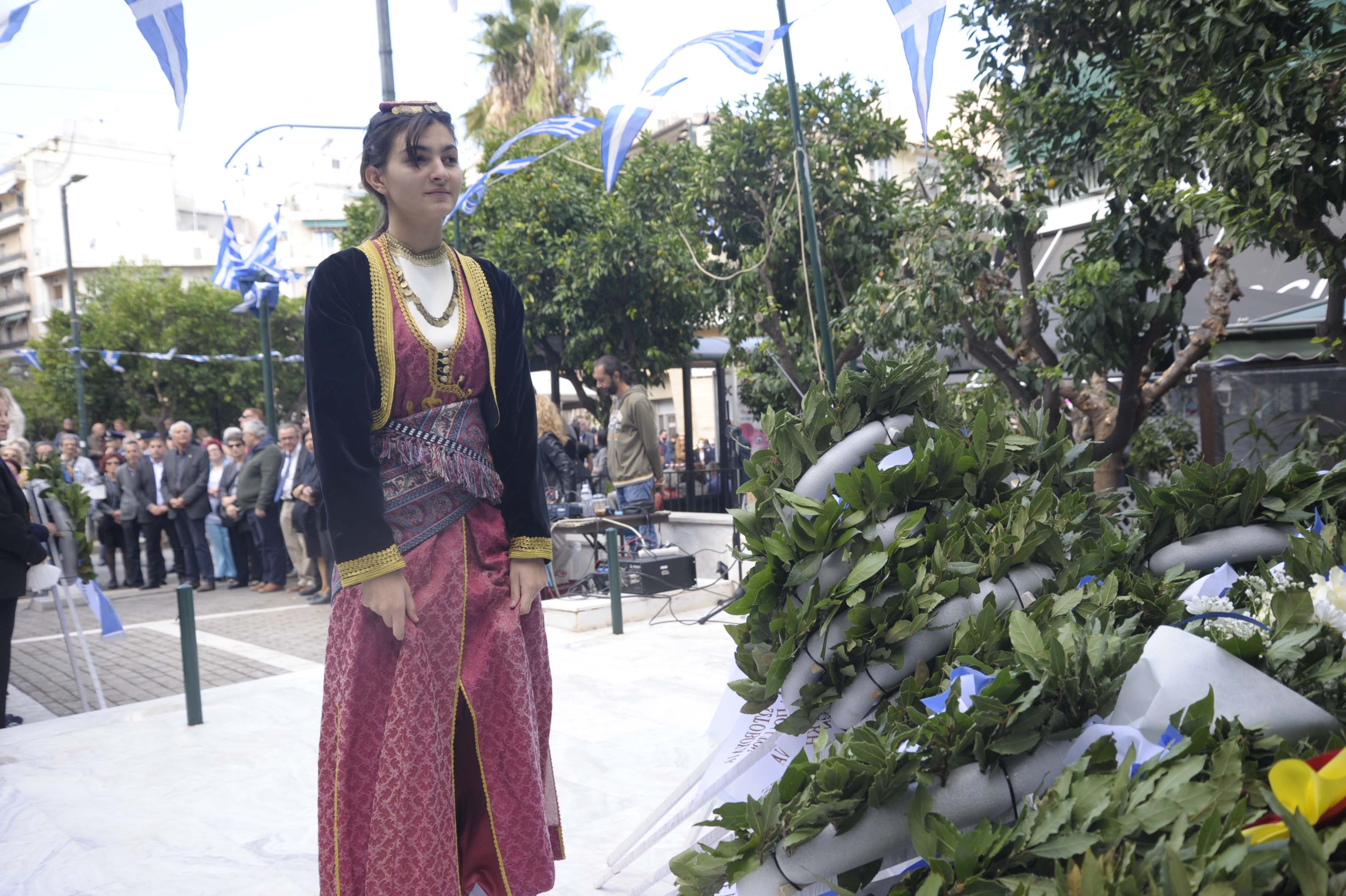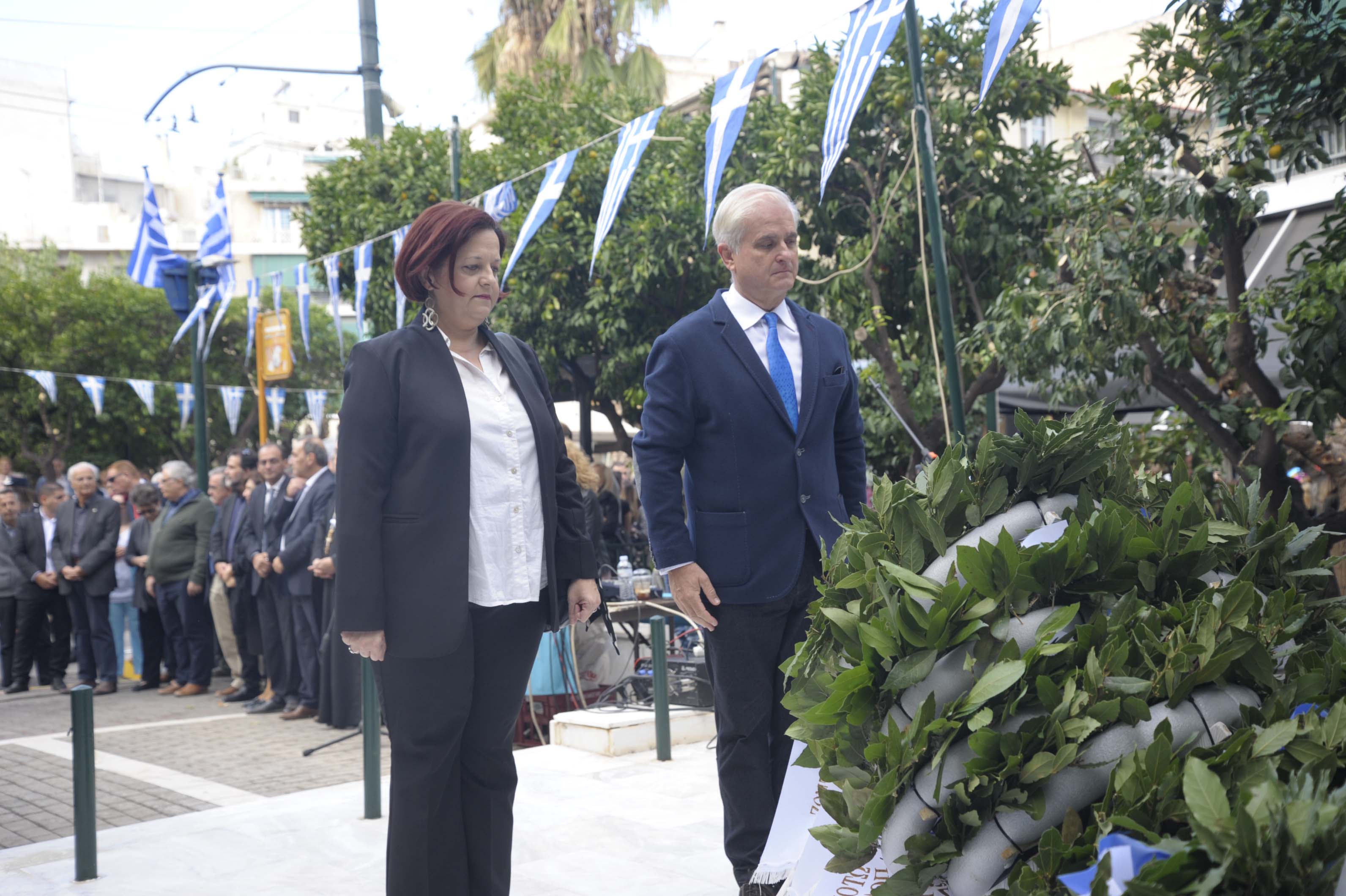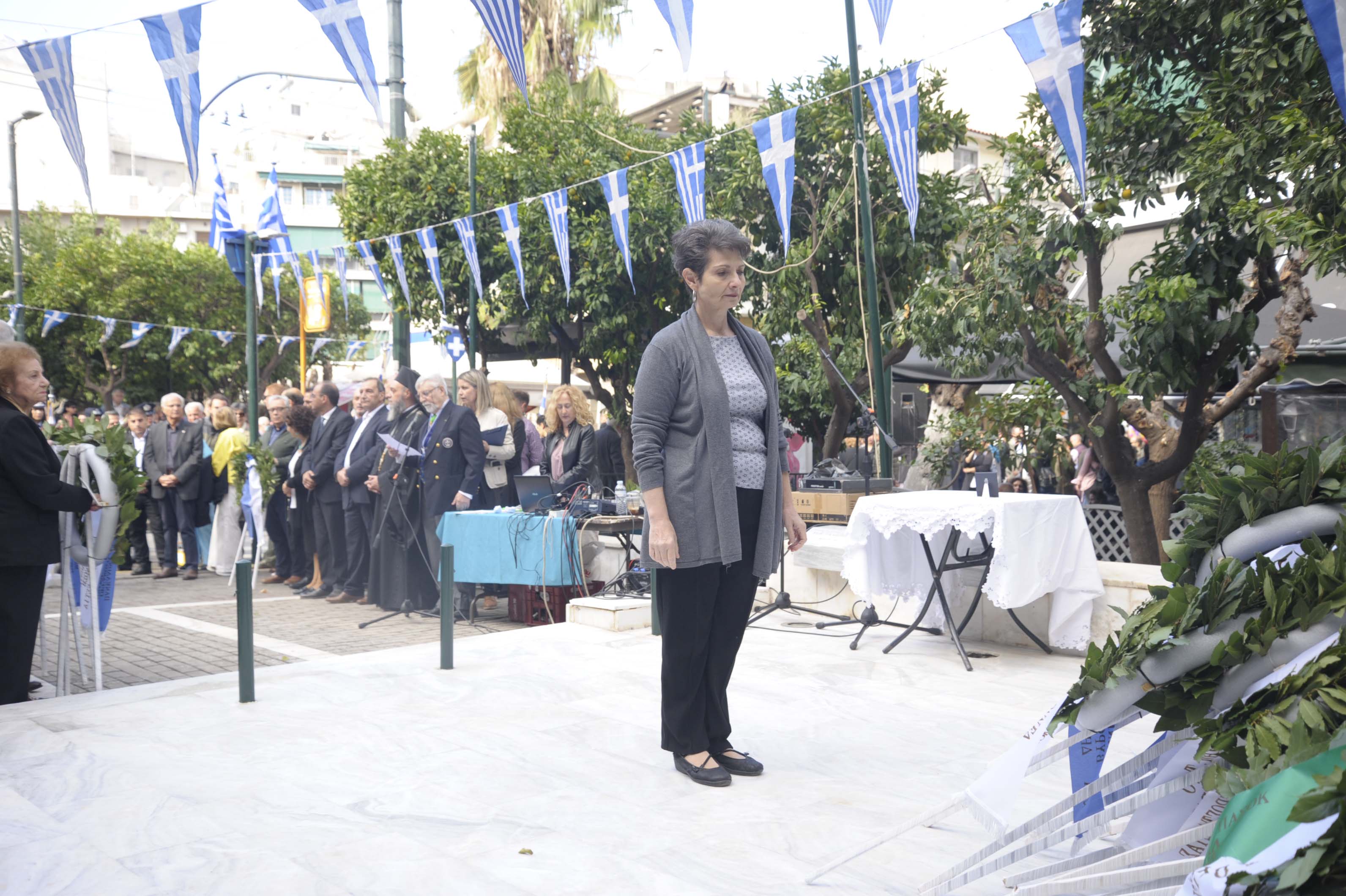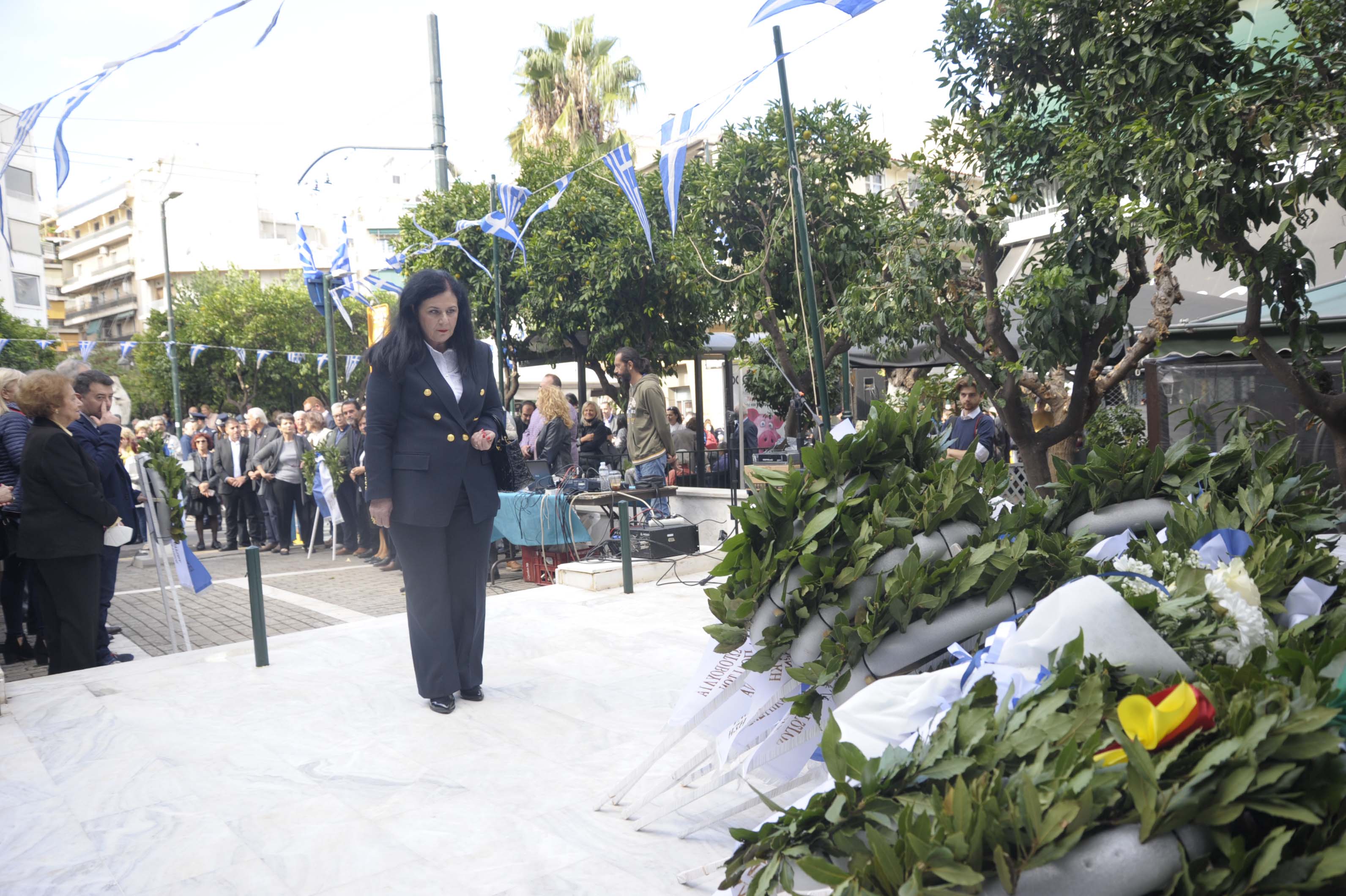 Στη συνέχεια το επίκεντρο του εορτασμού μεταφέρθηκε στο Μνημείο Ηρώων, στην πλατεία Χρυσοστόμου Σμύρνης, όπου πραγματοποιήθηκε στις 11.00 επιμνημόσυνη δέηση στο Μνημείο της Εθνικής Αντίστασης από τον Πανοσιολογιώτατο Αρχιμανδρίτη κ. Χριστόδουλο Κοτσίφη.