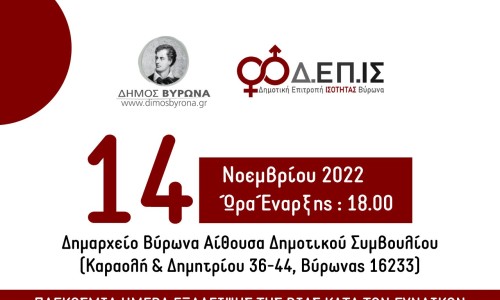 Εκδήλωση της Δημοτική Επιτροπής Ισότητας Βύρωνα, για την Παγκόσμια Ημέρα εξάλειψης της βίας κατά των γυναικών