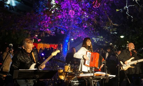 Η γιορτή συνεχίστηκε με την καταπληκτική Μιρέλλα Πάχου που με το ακορντεόν της και τους εξαιρετικούς μουσικούς της Δημήτρη Σινογιάννη (ηλεκτρική κιθάρα), Δημήτρη Μουτάφη (μπάσο) και Δημήτρη Χριστοδουλάκη (τύμπανα) μας χάρισε ένα πρόγραμμα με τραγούδια, αγαπημένων Ελλήνων καλλιτεχνών, τραγούδια από τη δισκογραφία της αλλά και τραγούδια των Χριστουγέννων!