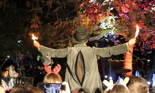 Η εκδήλωση άνοιξε επίσημα, με το χαιρετισμό του Δημάρχου Βύρωνα Γρηγόρη Κατωπόδη ο οποίος ανέφερε: " Σας καλωσορίζω, εδώ, στην Πλατεία του Αγίου Λαζάρου που χτυπάει η καρδιά της πόλης μας, με το τεράστιο αστέρι μας που αποτελεί πια ένα σήμα κατατεθέν για την πλατεία και αποτελεί μία πύλη για έναν κόσμο διασκέδασης, χαράς και Χριστουγεννιάτικης ξεγνοιασιάς για μικρούς και για μεγάλους. Φέτος, παρά την κρίση που υπάρχει, η Δημοτική Αρχή έχει σχεδιάσει και υλοποιεί ένα μεγάλο πρόγραμμα αναβάθμισης των εορταστικών εκδηλώσεων αλλά και του στολισμού της πόλης, φιλοδοξώντας να προσφέρει σε όλους μας ένα πιο ευχάριστο κλίμα που να φτιάχνει τη διάθεση όλων μας και να μας προσκαλεί να ανακαλύψουμε κάθε γωνιά, κάθε πλατεία ή πάρκο του Βύρωνα και του Καρέα. Και όλα αυτά χωρίς να αμελούμε την ευθύνη που έχουμε για τη μείωση της κατανάλωσης ενέργειας, αφού όλοι οι στολισμοί μας είναι πλέον τεχνολογίας LED. Κάθε πάρκο, κάθε πλατεία είναι πλέον και μια αφορμή να τραβήξετε όμορφες φωτογραφίες, και να τις μοιραστείτε στα social media με τους φίλους σας. Σήμερα λοιπόν ξεκινάμε τις εκδηλώσεις μας και σύντομα θα έχετε την ευκαιρία να δείτε και άλλες εκδηλώσεις, στη νέα πλατεία Φατσέα, η ανάπλαση της οποίας βρίσκεται κοντά στην ολοκλήρωσή της αυτές τις μέρες, στα Θέατρα Βράχων όπου για πρώτη φορά έχουμε το χωριό του Άη-Βασίλη, στην Πλατεία Τσιρακοπούλου και βέβαια τις εξαιρετικές παραστάσεις που ανεβαίνουν στο Δημοτικό Κινηματογράφο “Νέα Ελβετία”, τις οποίες σας καλούμε να "ανακαλύψετε".