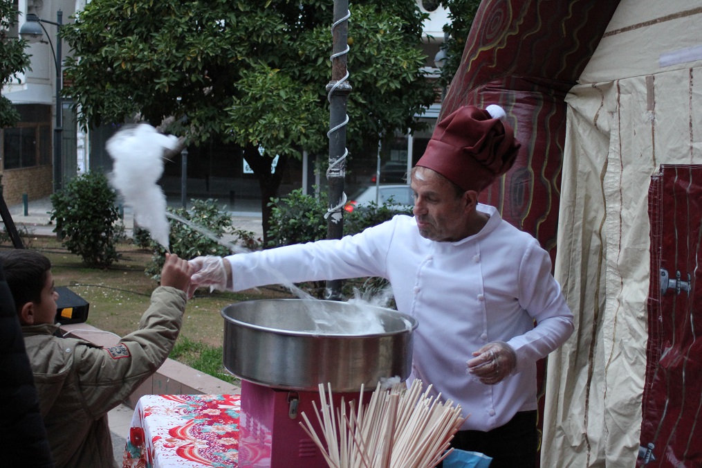 Από νωρίς το απόγευμα οι μικροί μας φίλοι διασκέδαζαν με τον Κόμη τους Ξυλοπόδαρους και τις Μασκότ των Χριστουγέννων, στην γωνιά του Άη Βασίλη έγραφαν γράμματα ζητώντας τα δώρα τους, φωτογραφίζονταν μπροστά στο Φωτεινό Αστέρι τρώγοντας Μαλλί της Γριάς και πίνοντας ζεστή σοκολάτα από την Κοινωνική Κουζίνα “Ο Άλλος Άνθρωπος του Βύρωνα”.