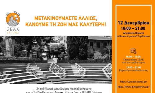 Γι’ αυτό σας προσκαλούμε: Τη Δευτέρα 12 Δεκεμβρίου στις 18:00 στην Αίθουσα Δημοτικού Συμβουλίου Βύρωνα.