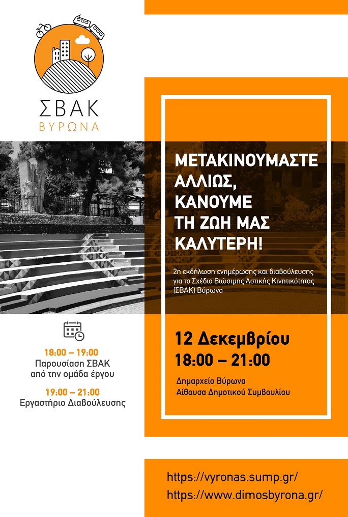 2η Εκδήλωση ενημέρωσης & διαβούλευσης για το Σχέδιο Βιώσιμης Αστικής Κινητικότητας Βύρωνα