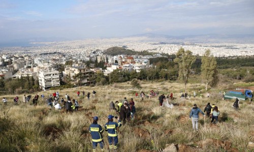 Δενδροφύτευση στον Υμηττό από εθελοντές δασοπυροσβέστες και το Τμήμα Πολιτικής Προστασίας Βύρωνα