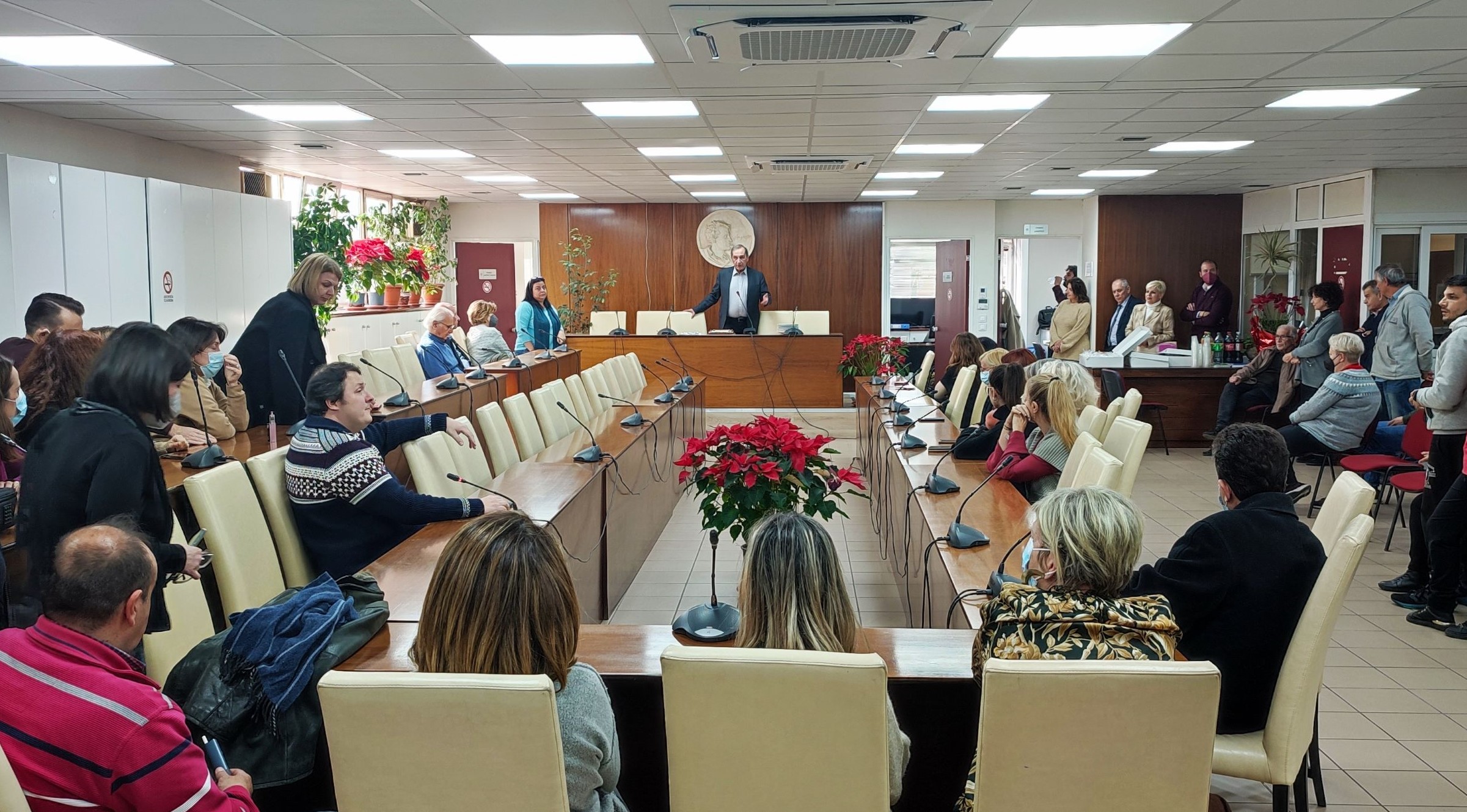 Ο Δήμαρχος, Γρηγόρης Κατωπόδης, ευχήθηκε καλή χρονιά με υγεία, δημιουργικότητα και επιτυχίες σε όλους τους εργαζόμενους, τις εργαζόμενες και τις οικογένειες τους και στη συνέχεια έκοψε την πίτα.